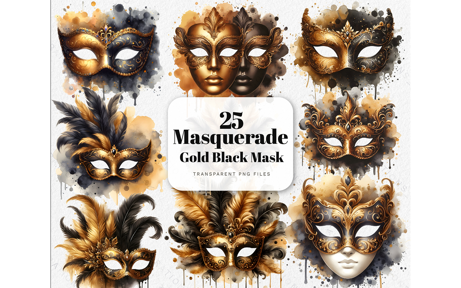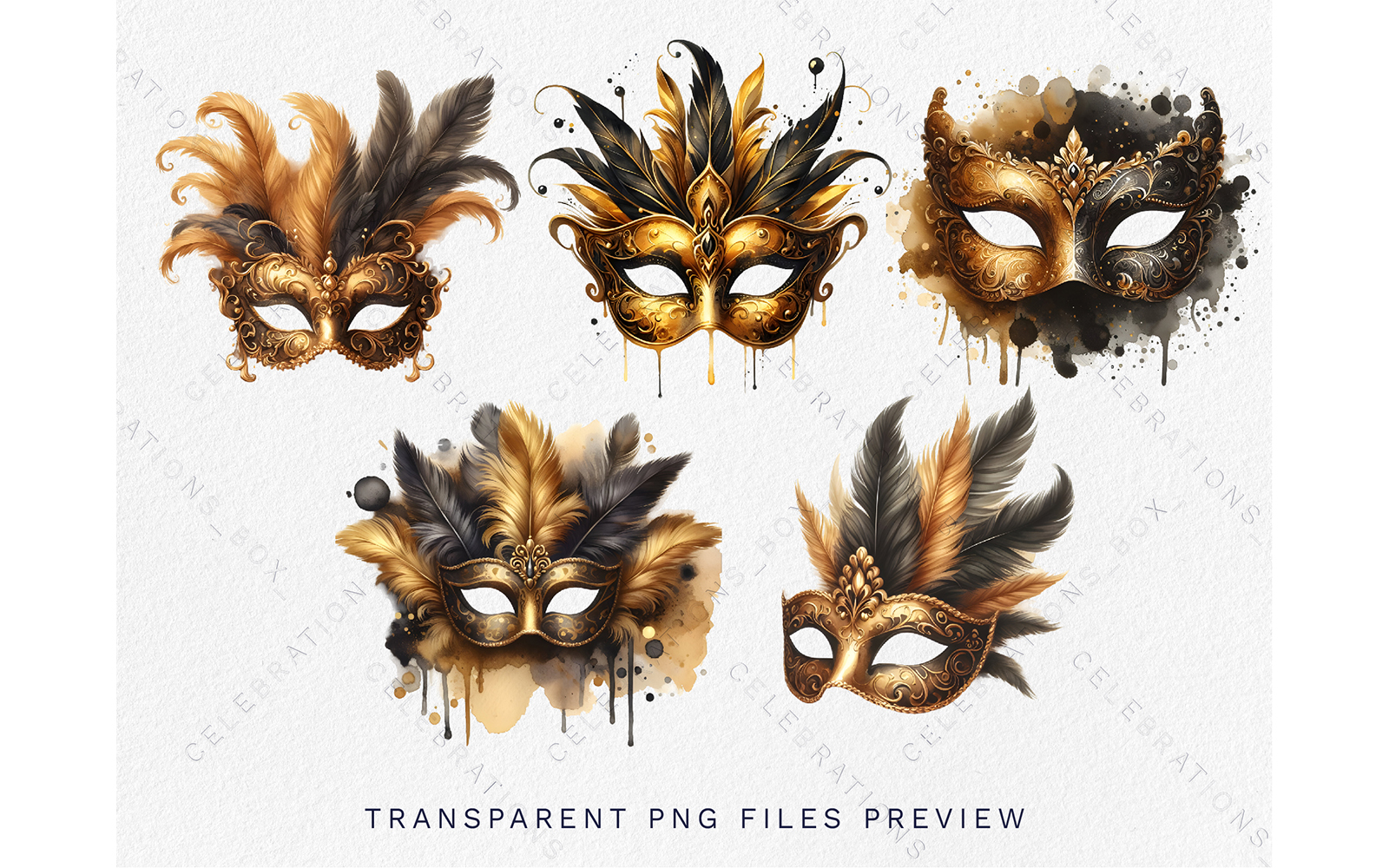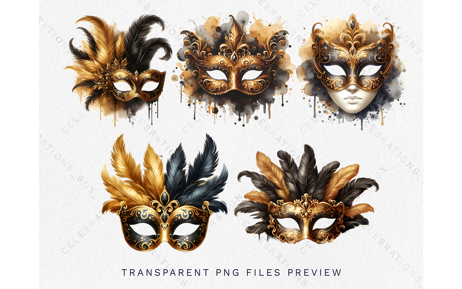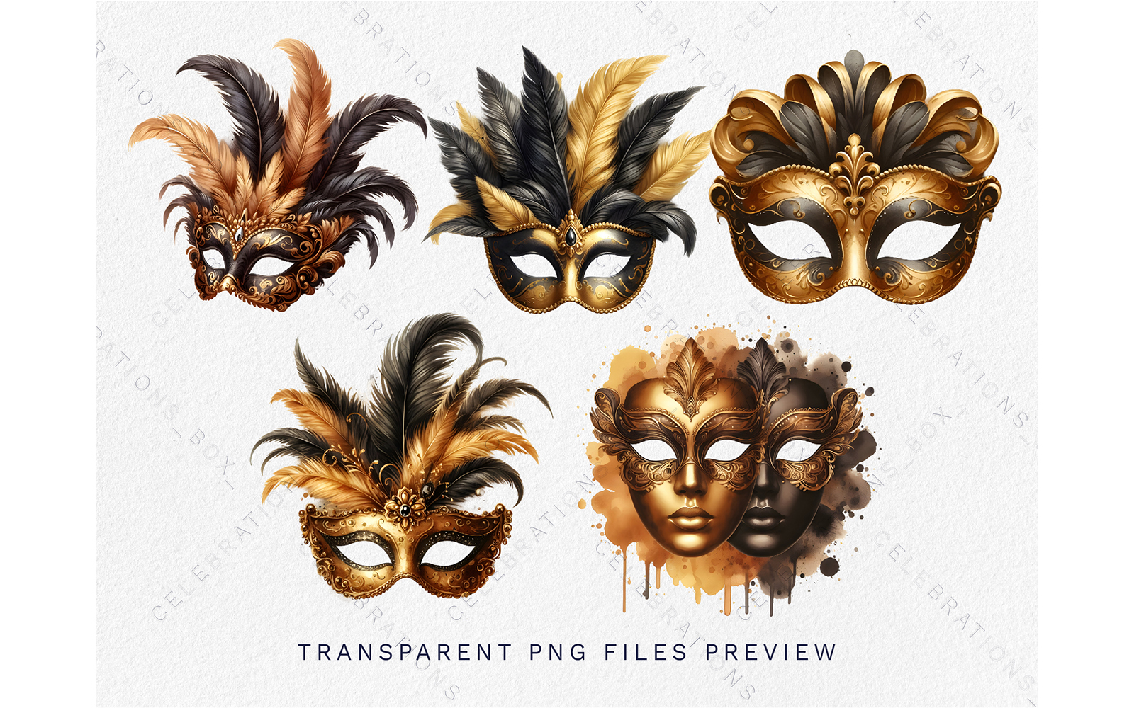 Step right into the vibrant world of Carnival with our 25 Golden Black Carnival Mask Clipart ! This bundle is perfect for anyone who wants to bring a taste of Brasilian Carnival to their designs and graphics. Packed with lively and colorful Masquerade Mask clipart images, this bundle includes a range of elements that capture the essence of this world-famous Carnival celebration.