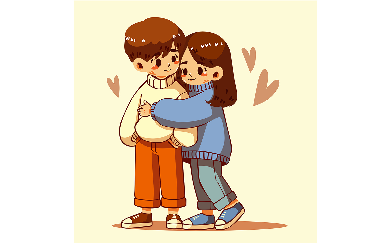 **Explore a touching illustration where forgiveness and introspection are pictured as a cartoon boy and girl hugging in a sweet, charming scene**