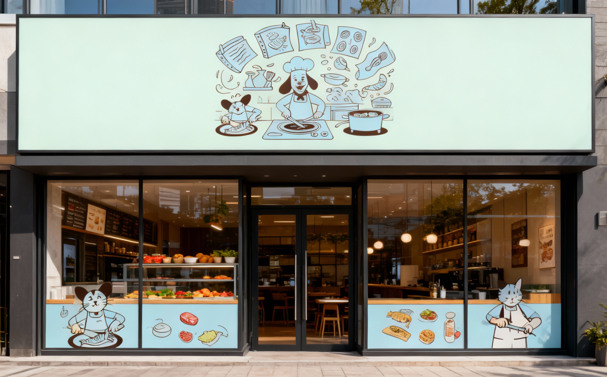 This modern vector illustration features a cheerful dog and cat dressed as chefs, happily preparing food together. With its bright colors and playful cartoon style, this artwork is perfect for children’s books, educational materials, pet shops, pet food branding, cafes, posters, packaging, and social media content.