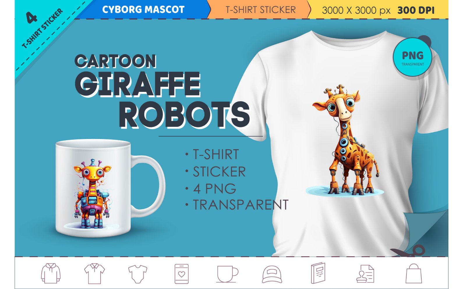Cartoon giraffe robots. T-Shirt, Sticker. Illustration