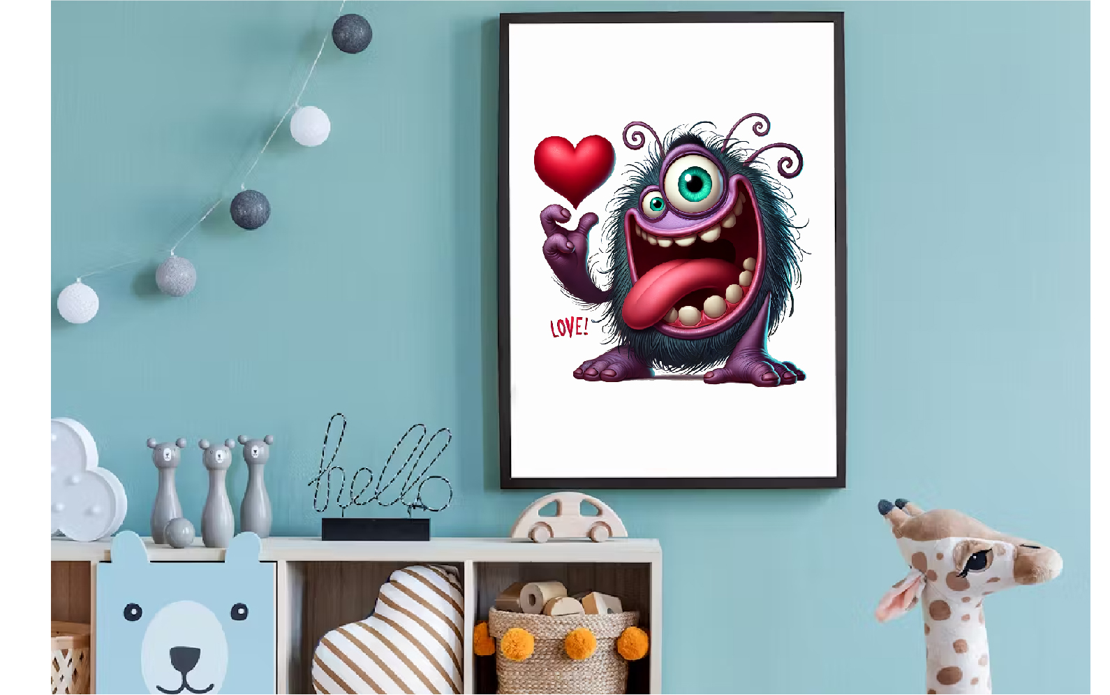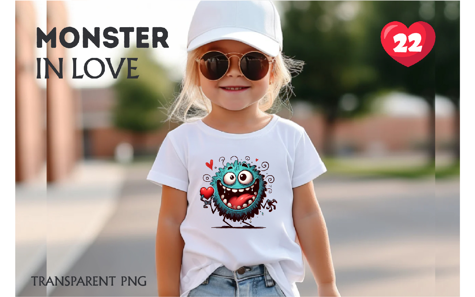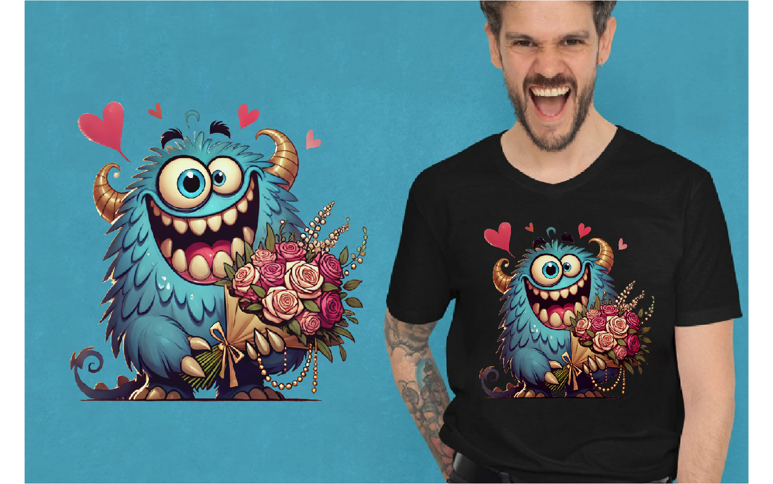 Cartoon Monster in Love. Tshirt, PNG. Illustration