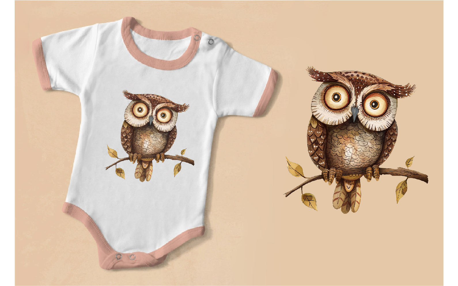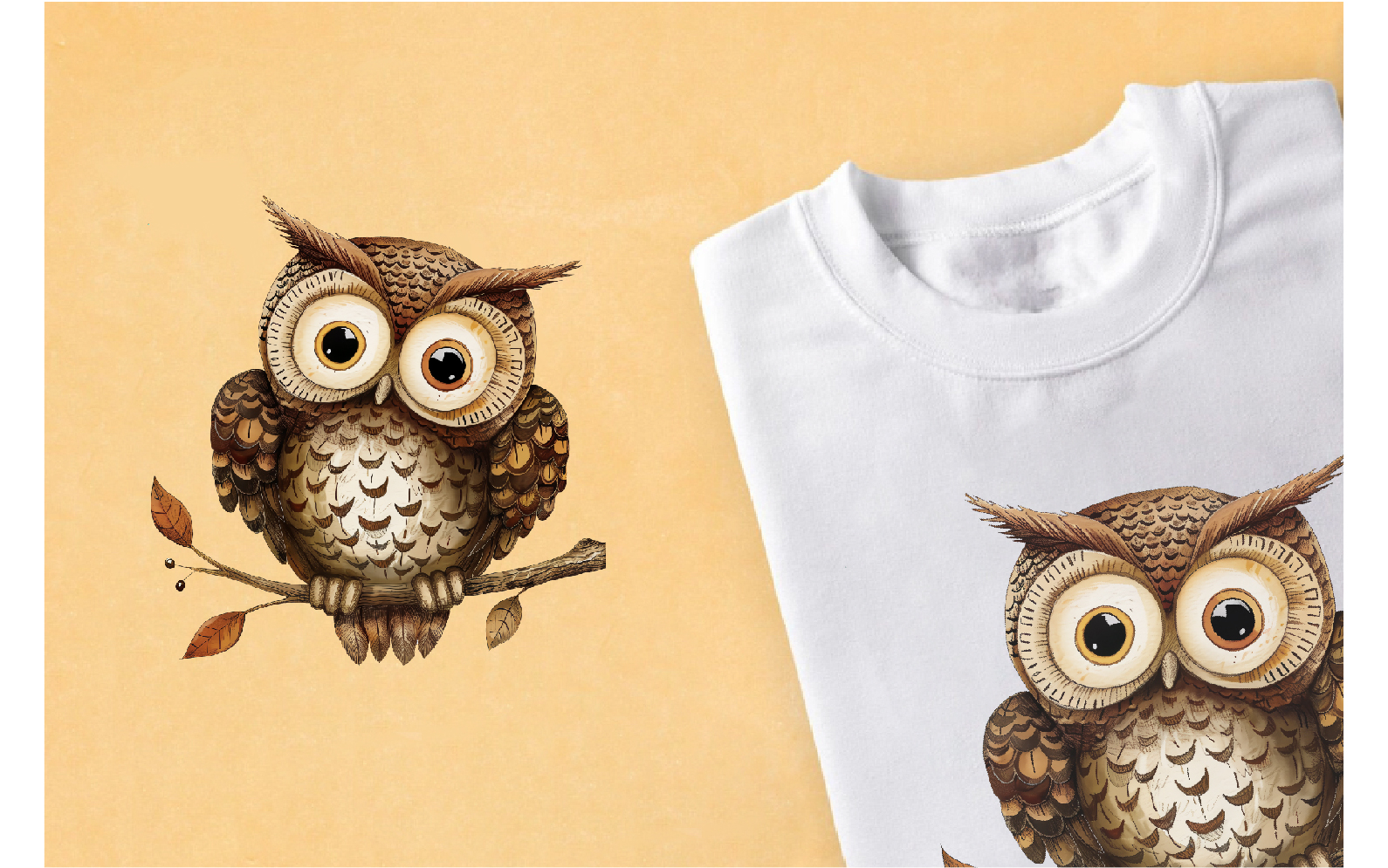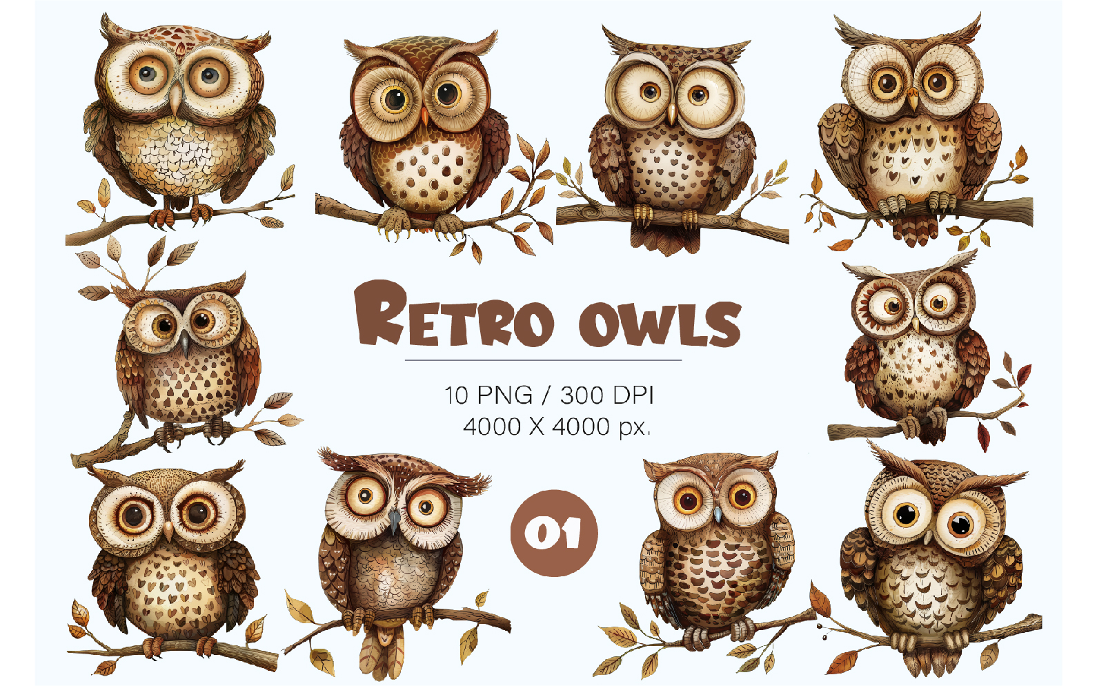 Cartoon retro owls 01. TShirt Sticker. Illustration