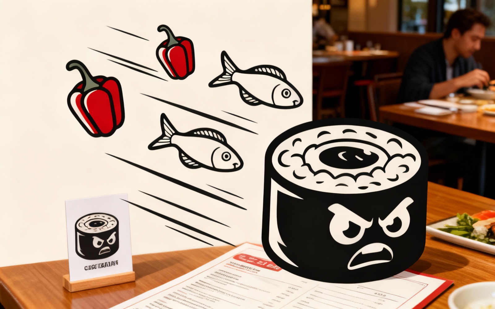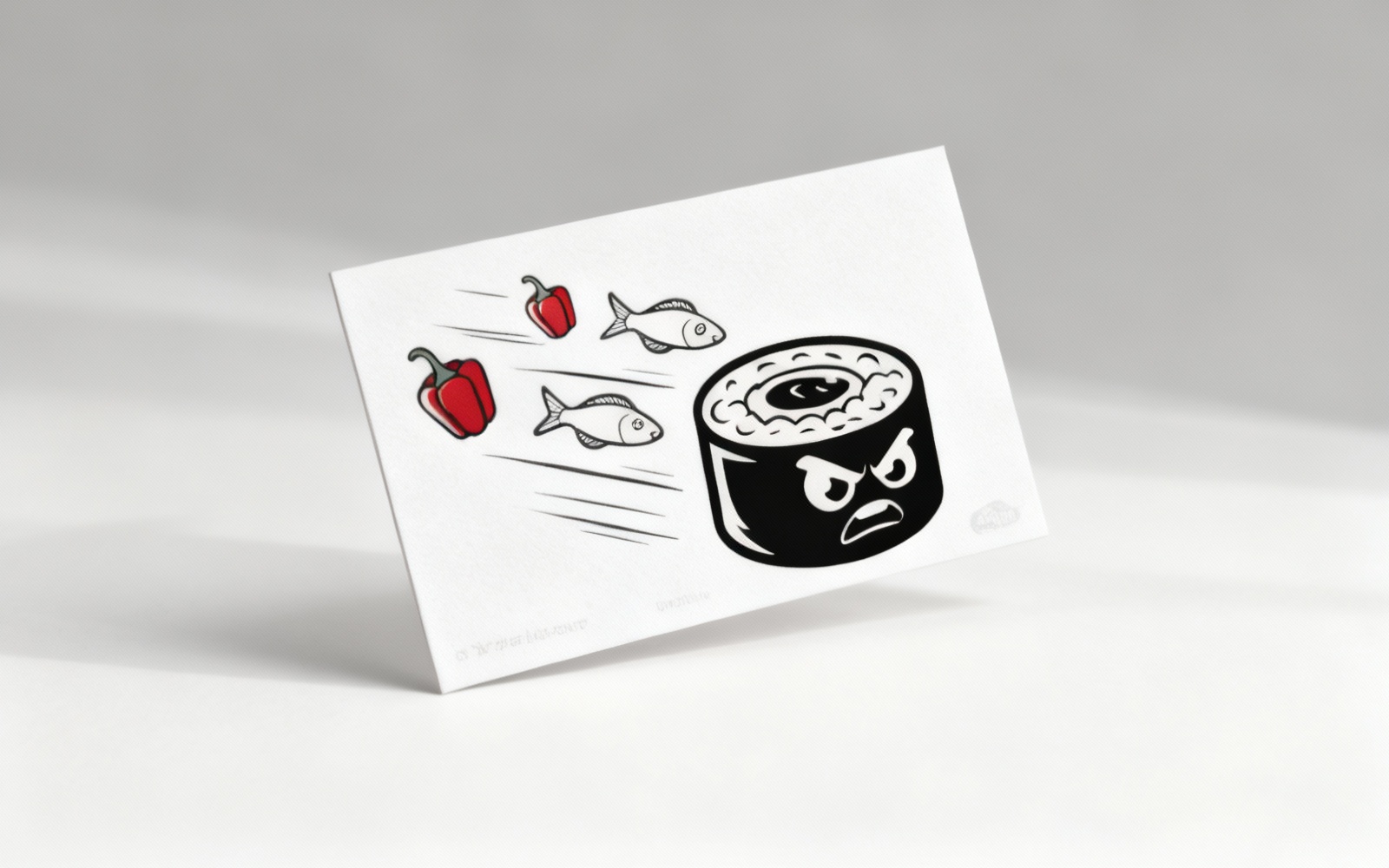 Cartoon Sushi Predator Chasing Prey - Bold Comic Book Style Art Illustration