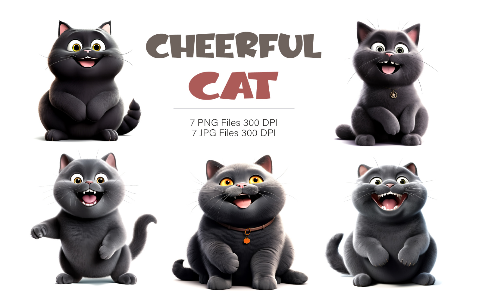 Cute cartoon Cheerful black cat. Clipart is a great choice for creating cards, invitations, party supplies and decorations, logos, planners, wall decor, decorating your blog, literature illustration, or creating stickers.