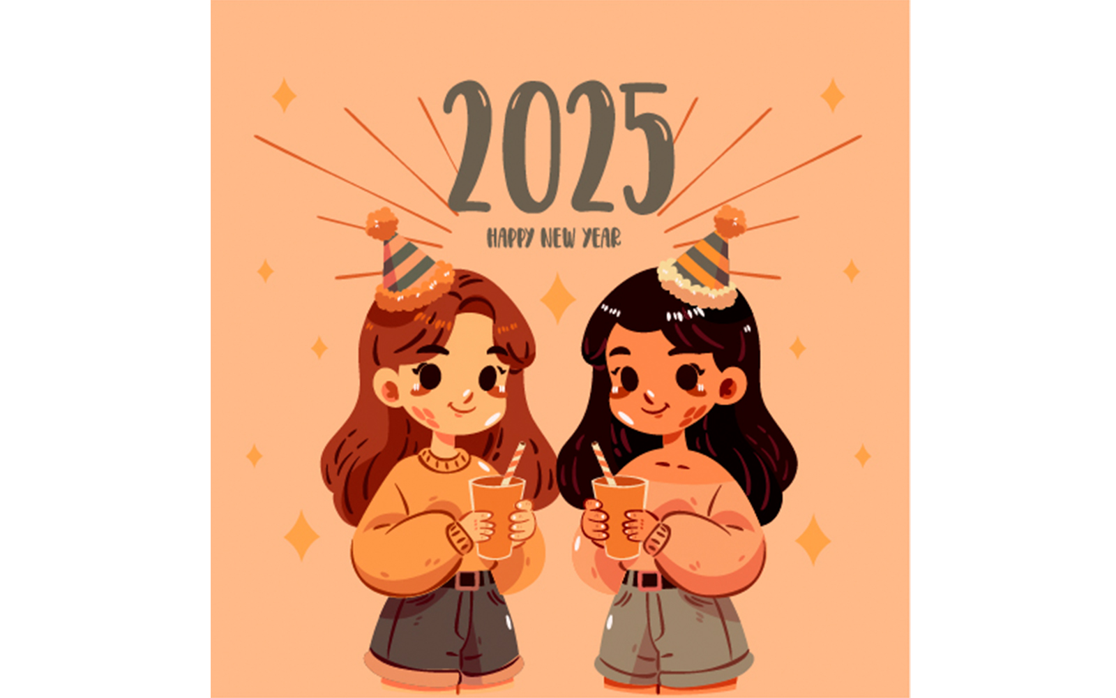 **Celebrate the joy of New Year’s Eve with this vibrant image featuring two cheerful girls adorned in festive party hats, each holding colorful drinks. Their expressions radiate happiness and excitement, perfectly capturing the spirit of celebration. This delightful scene embodies the essence of friendship and festivity, making it an ideal representation of joyful moments shared during the holiday season**