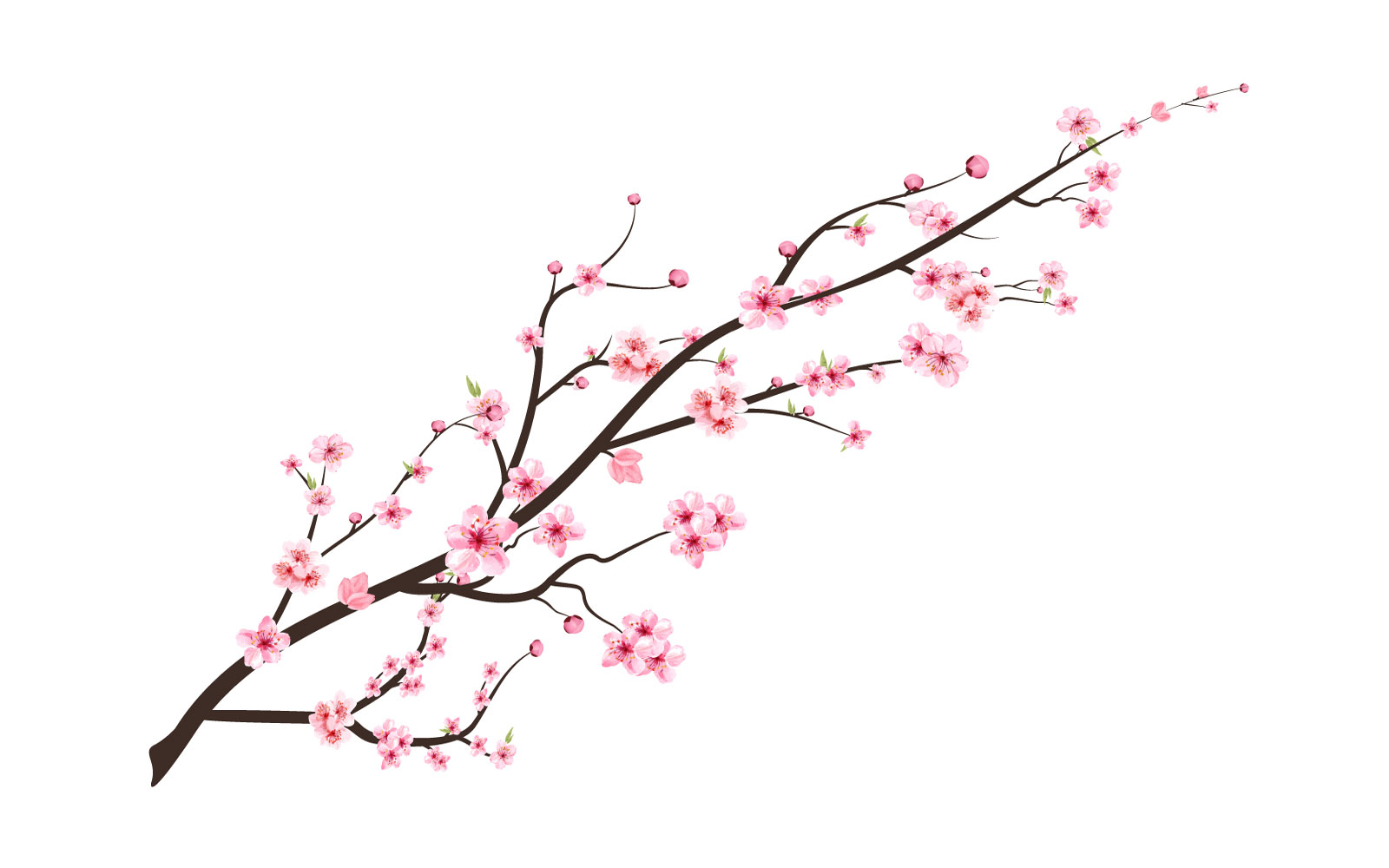 Cherry blossom with blooming Sakura flower. Realistic Cherry blossom branch. Japanese Cherry blossom vector. Cherry blossom with watercolor blooming Sakura flower. Pink sakura flower branch illustration. Watercolor cherry flower vector.