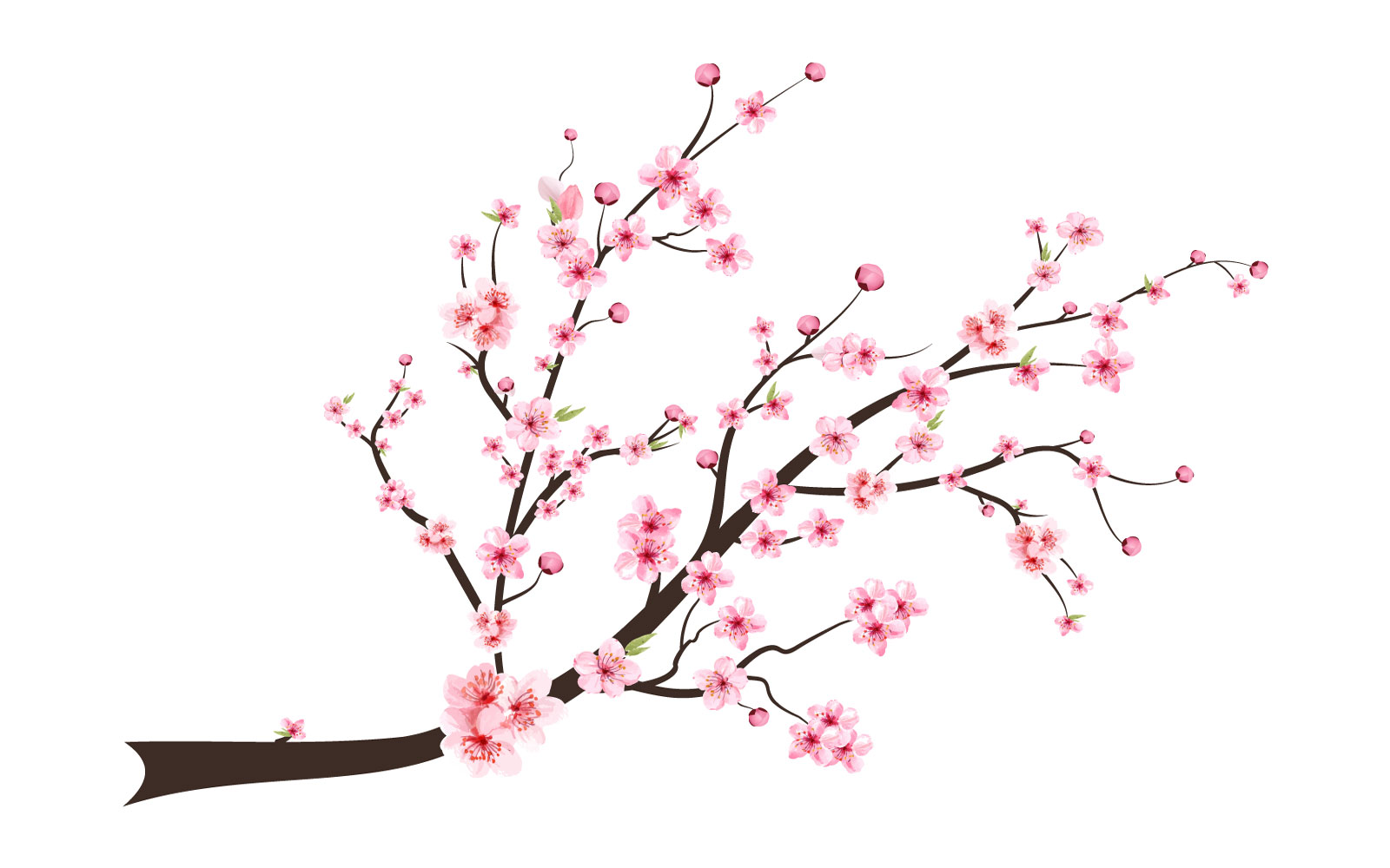 Cherry blossom pink watercolor flower. Cherry blossom flower blooming vector. Watercolor cherry blossom vector. Sakura on white background. Pink sakura flower background. Cherry blossom branch with sakura flower. Watercolor cherry bud.