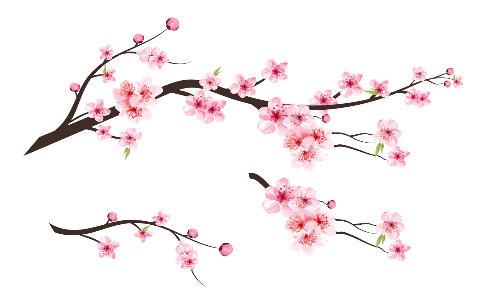 Cherry blossom watercolor pink flower. Watercolor cherry bud. Cherry blossom tree branch with sakura flower. Watercolor cherry blossom. Sakura on white background. Pink sakura flower background. Cherry blossom flower blooming vector.