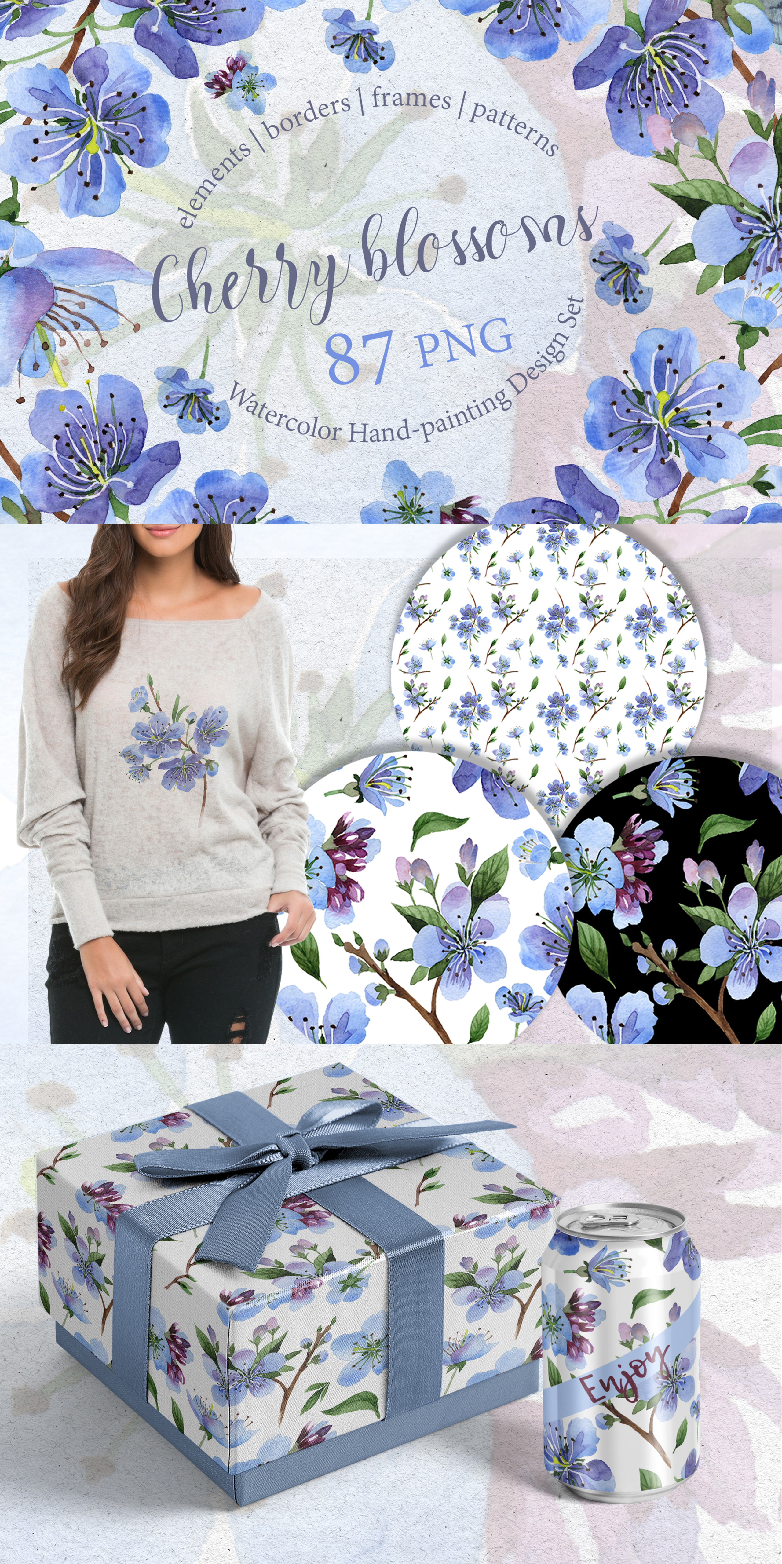 Watercolor hand-painting design blue flowers set of 87 files. Ideal material for DIY, wedding invitations, greeting cards, quotes, blogs, posters and more.
