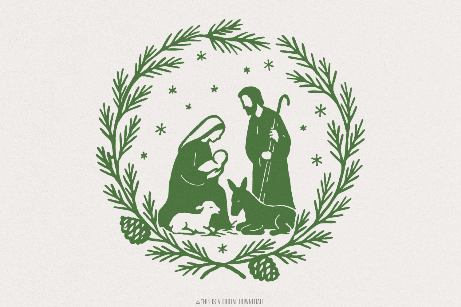 Christian Christmas Nativity Scene PNG, Holy Family, Baby Jesus, Religious Christmas Digital Illustration