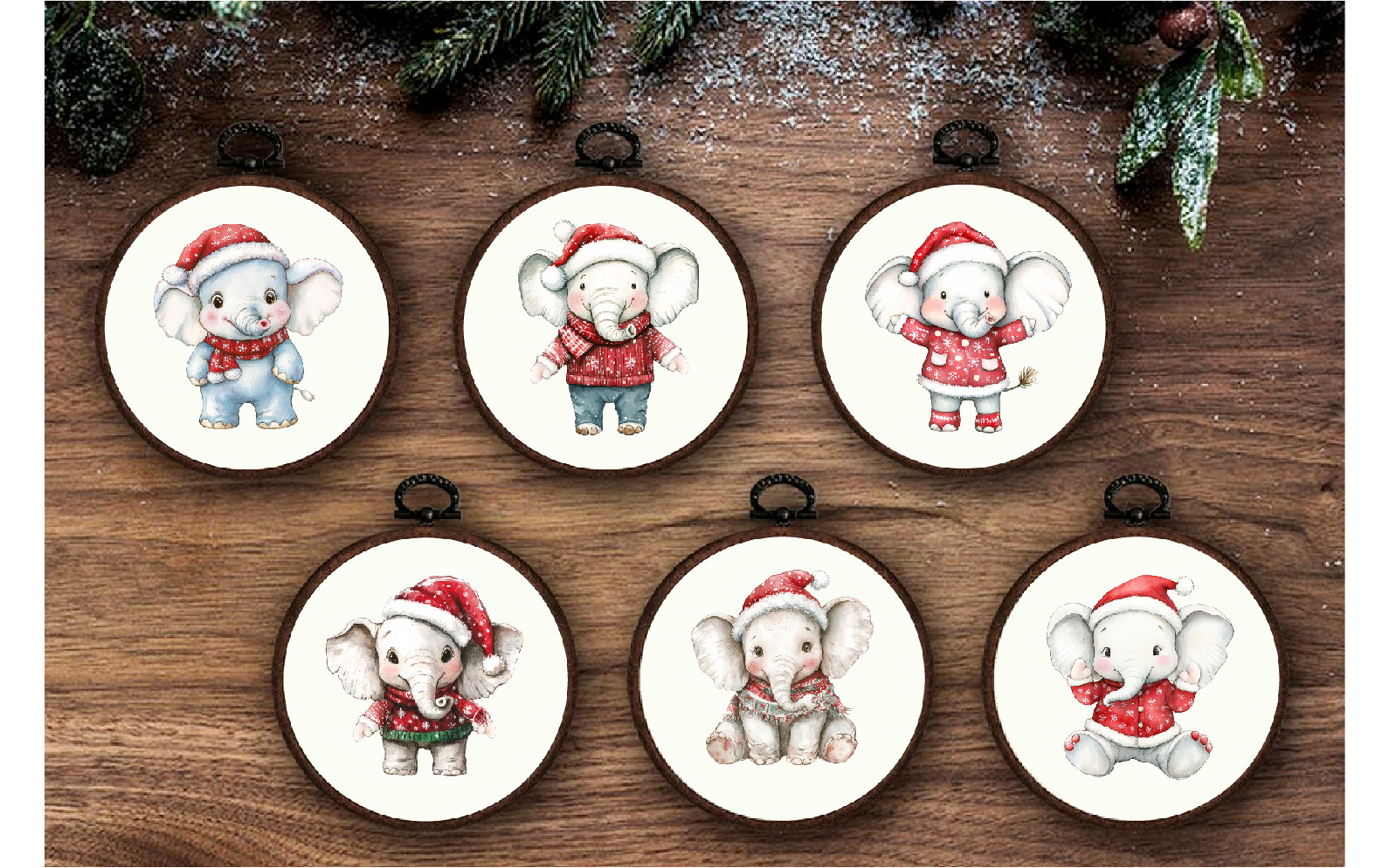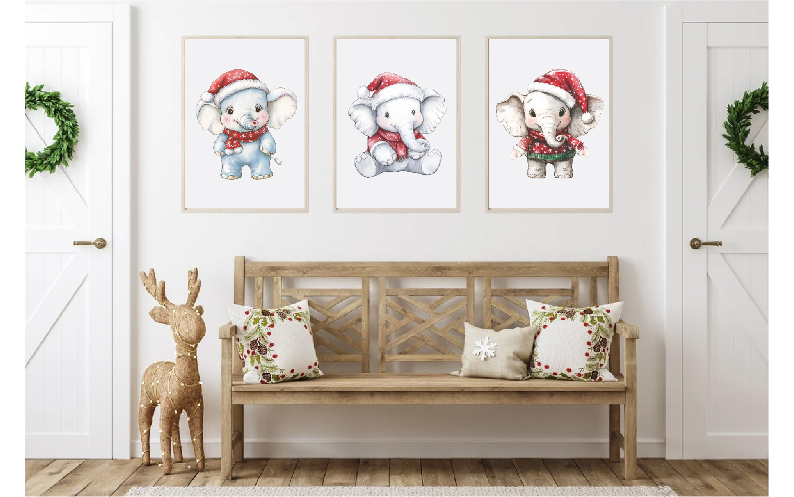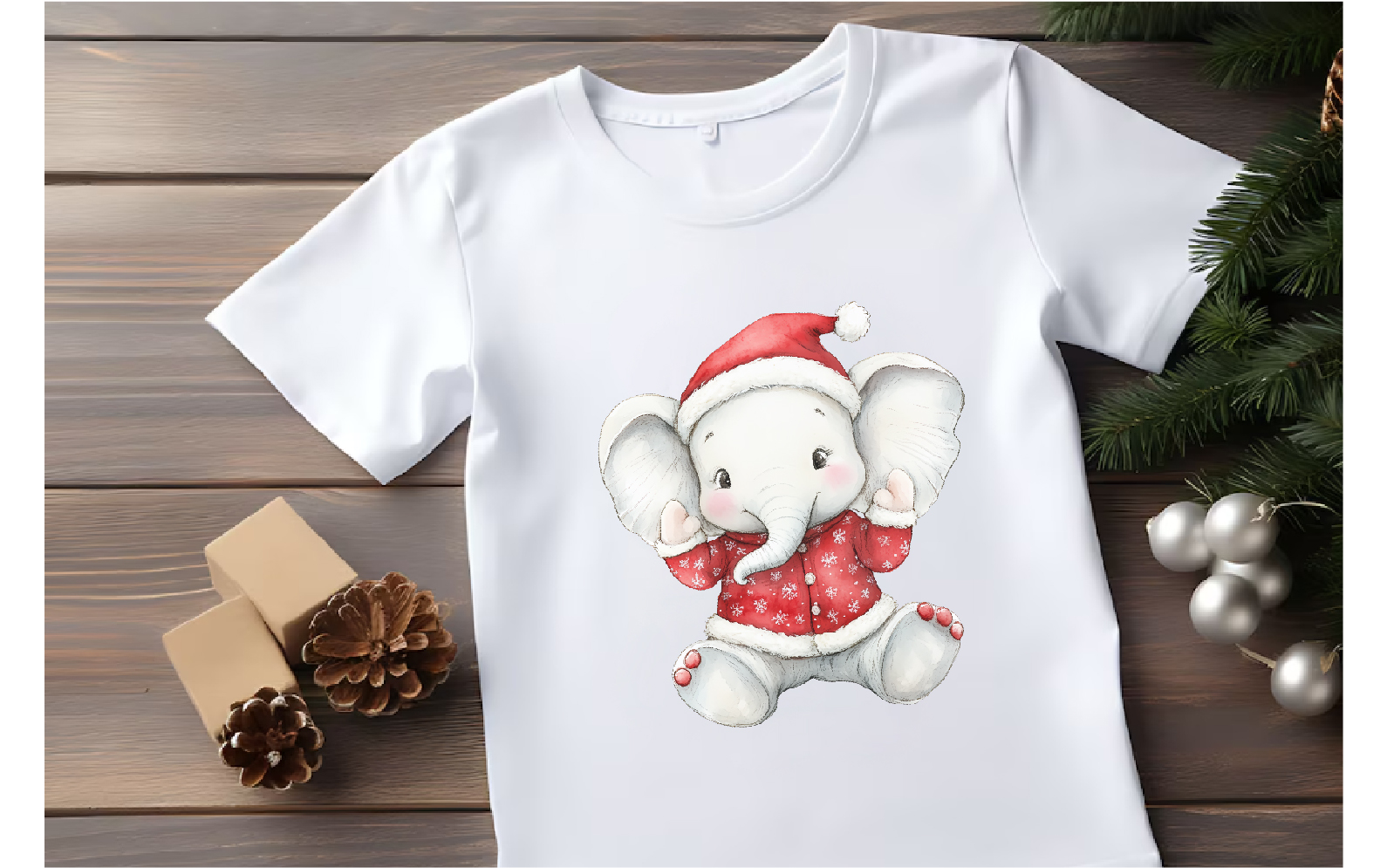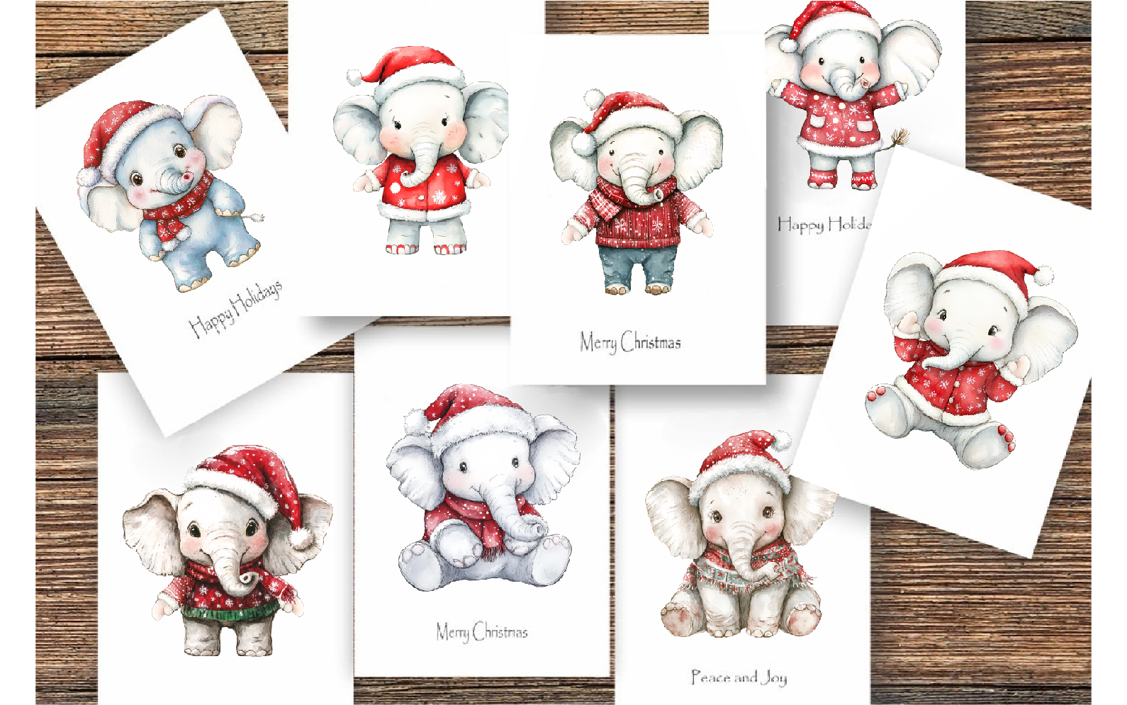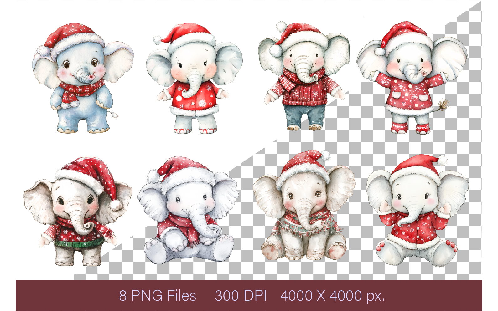 8 Watercolor Christmas Elephant With Santa Hat. Clip Art - great choice for creating cards, invitations, party supplies and decorations, logos, planners, wall decor, your blog design, book illustrations or stickers.