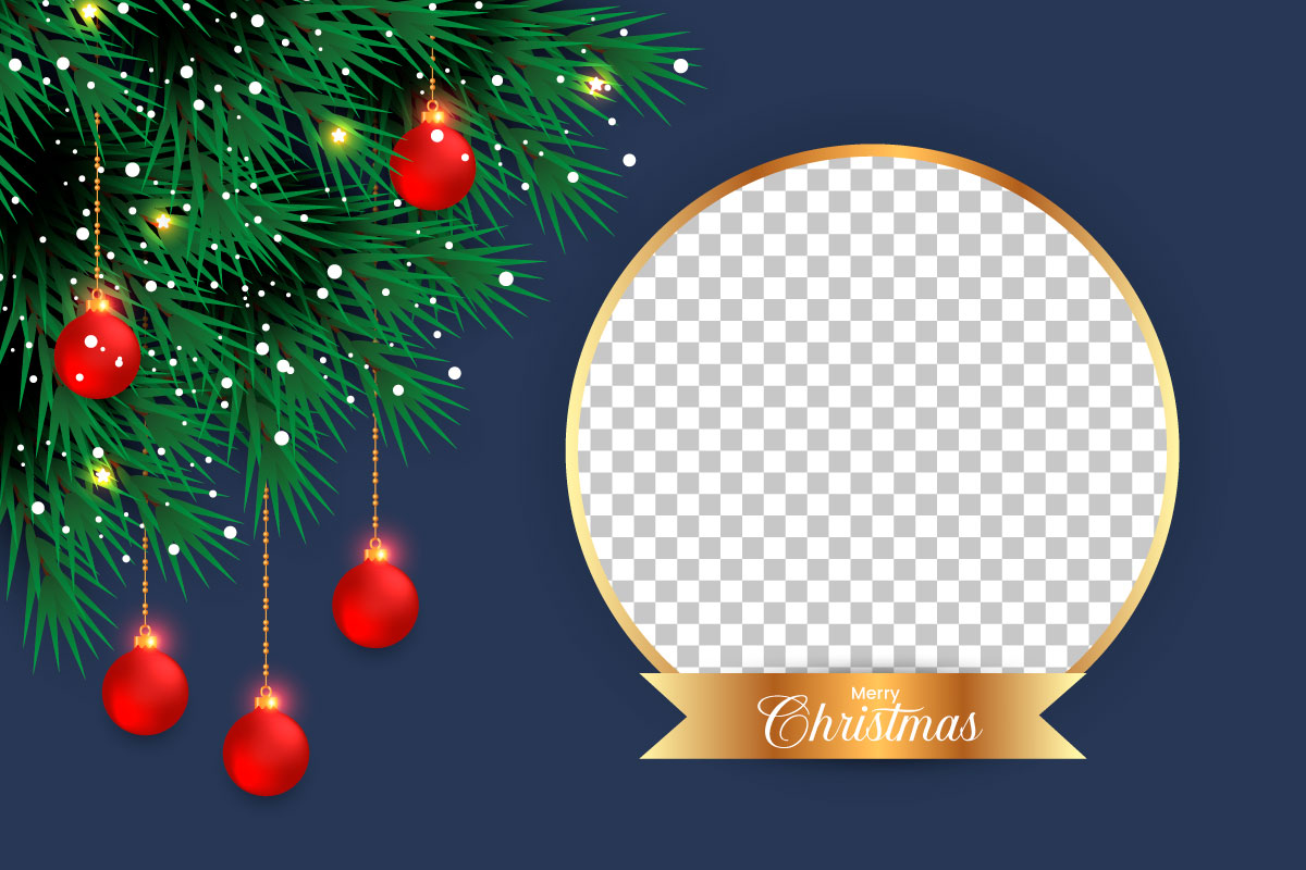 christmas photo frame and christmas frame with pine branch christmas ball and star. Ready to use for Multipurpose uses, All main elements are editable and customizable.