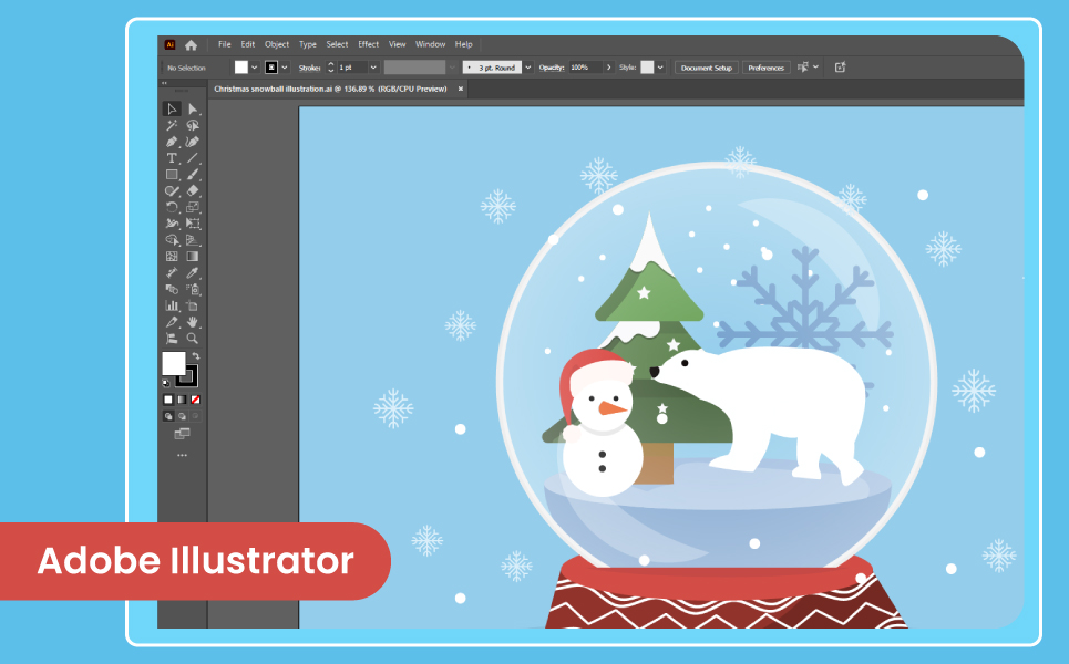 - ✅ Creating this Christmas-themed "Snow Ball Illustration" 3 File format (AI, EPS, JPG)