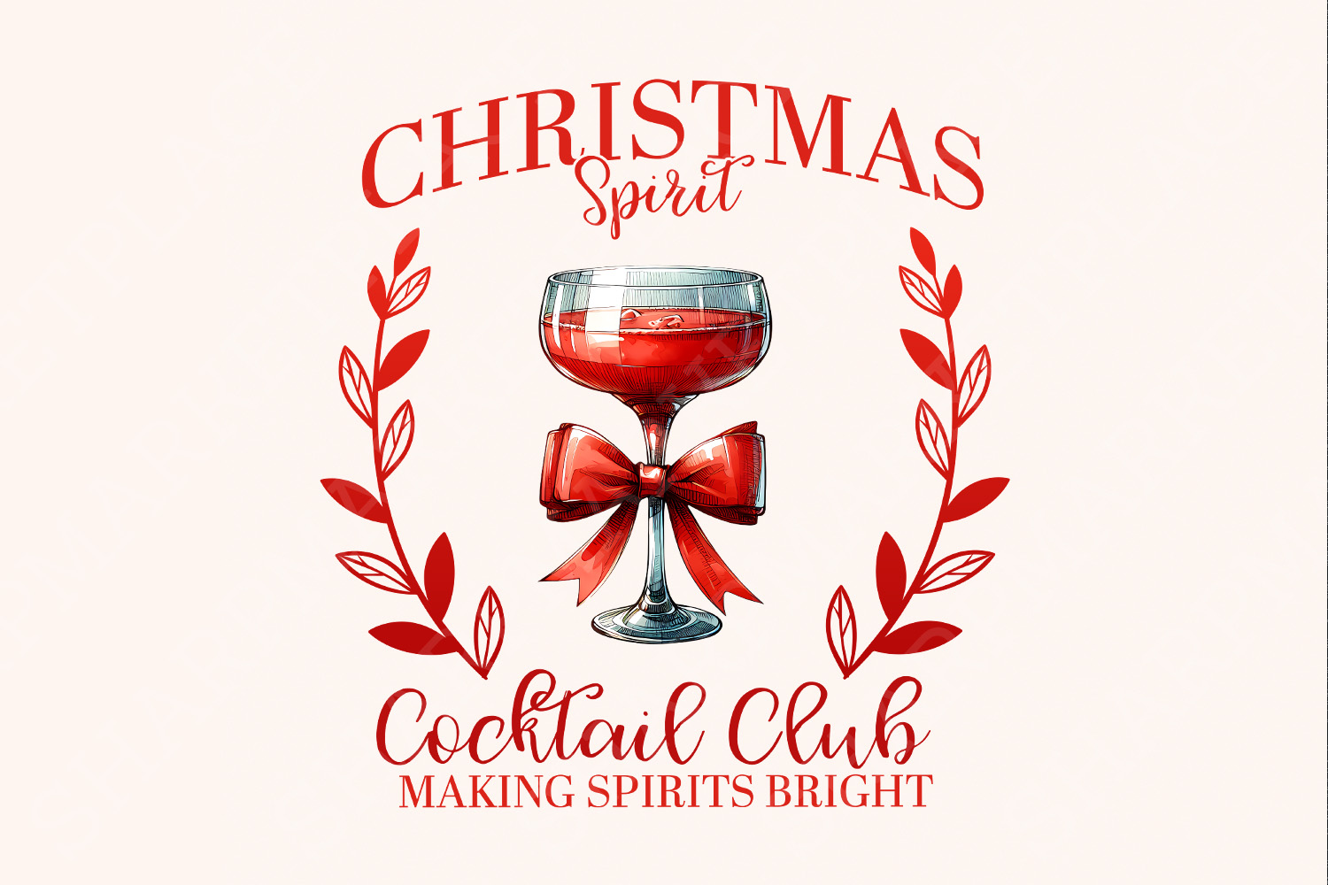 Christmas Spirit png, Retro Christmas png, Holiday png, cocktail club png, Coquette Christmas, Illustration