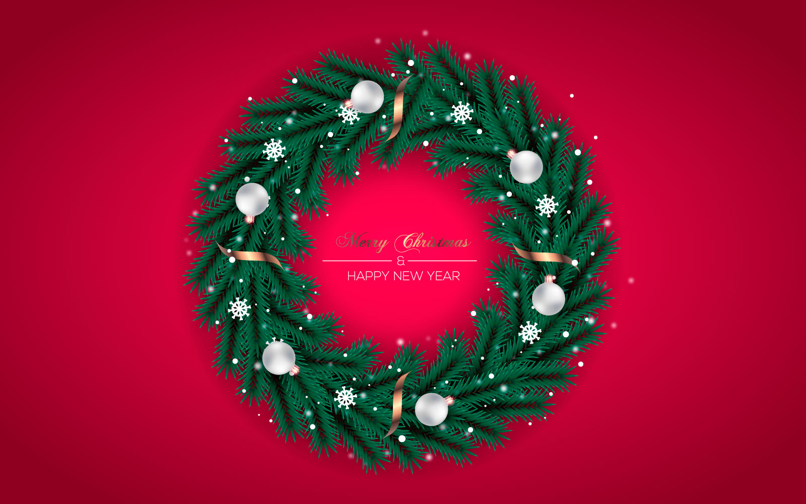 Christmas Wreath Decoration With Pine Branch Christmas Ball And Golden Ribon Illustration