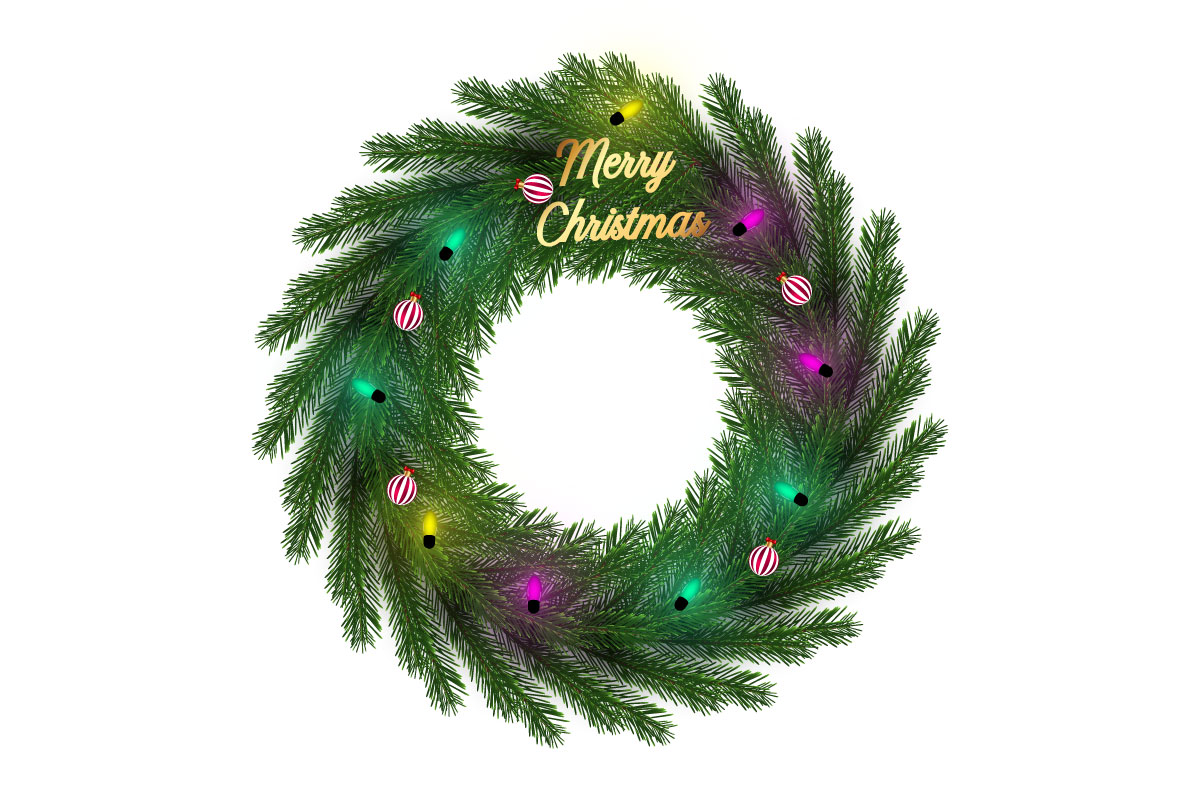 Christmas wreath decoration. wreath vector with pine leaves, Christmas balls, and a golden ribbon. christmas wreath on dark background. Ready to use for Multipurpose uses, All main elements are editable and customizable.
