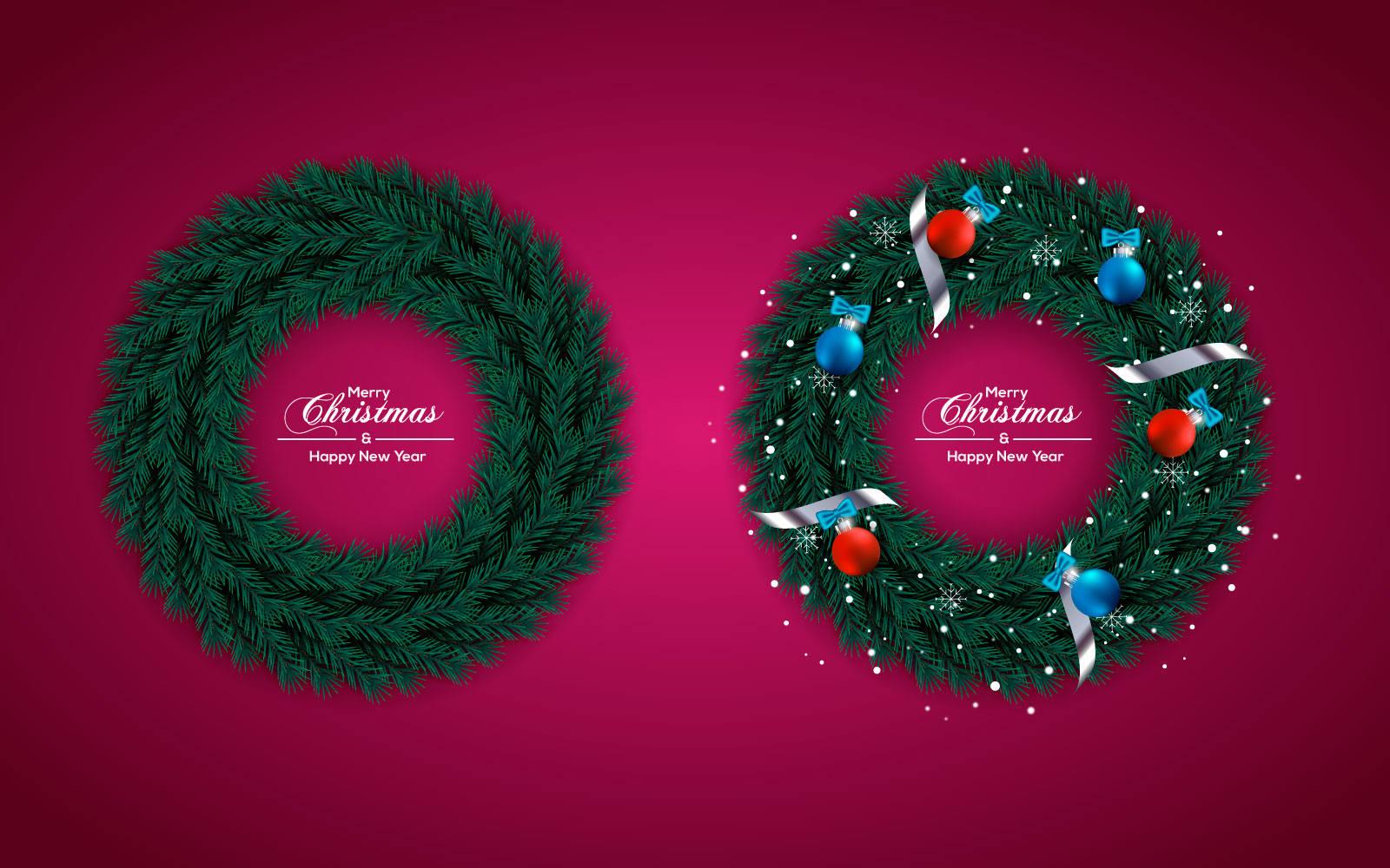 Christmas Wreath With Pine Branch Red Christmas Ball Illustration