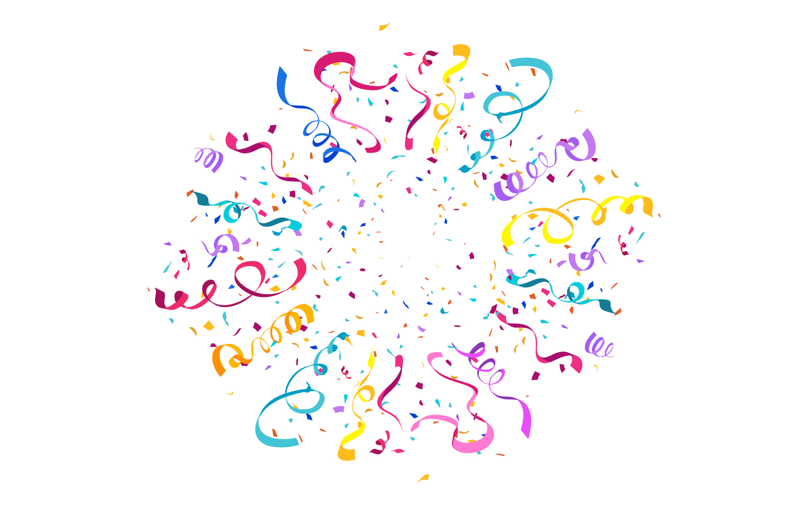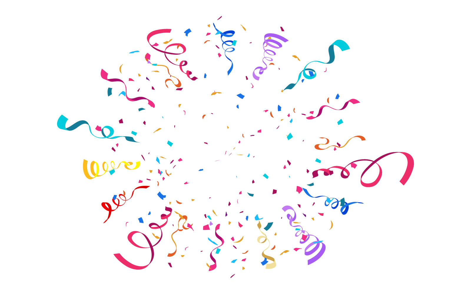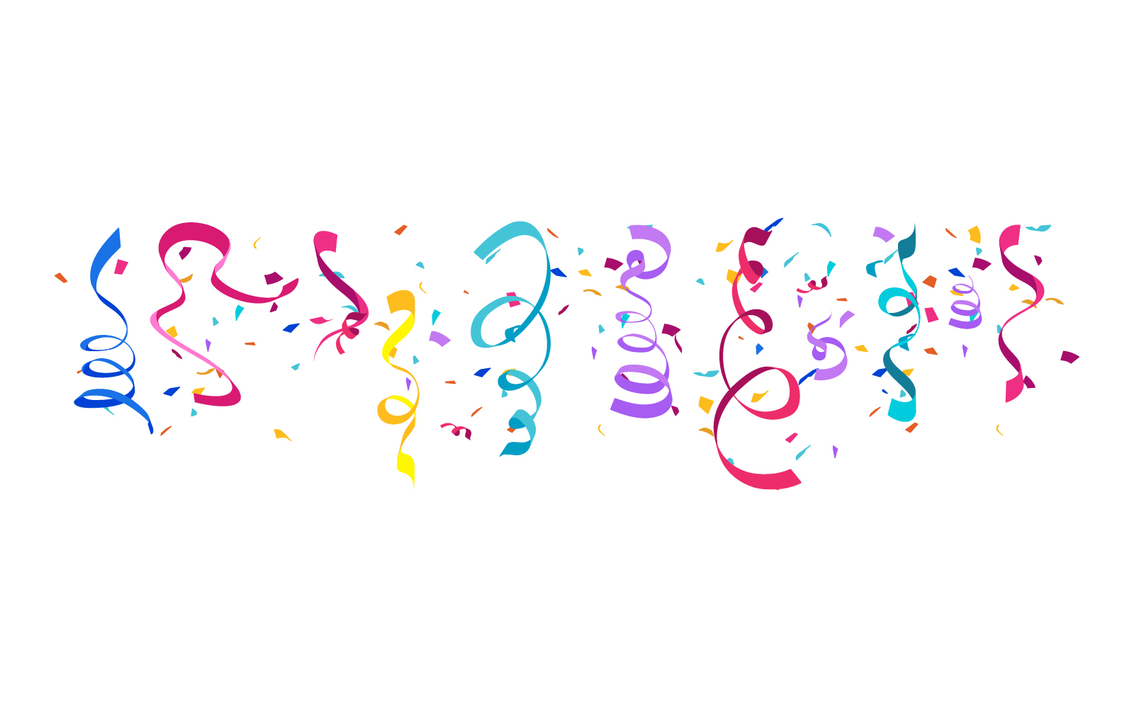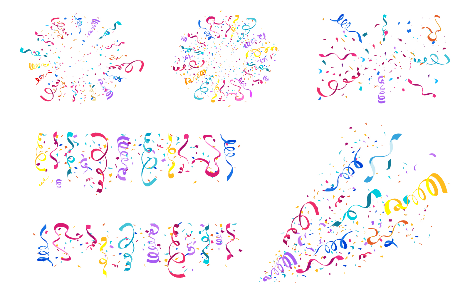 Colorful confetti and serpentine ribbons. Festive illustration in flat modern simple style.