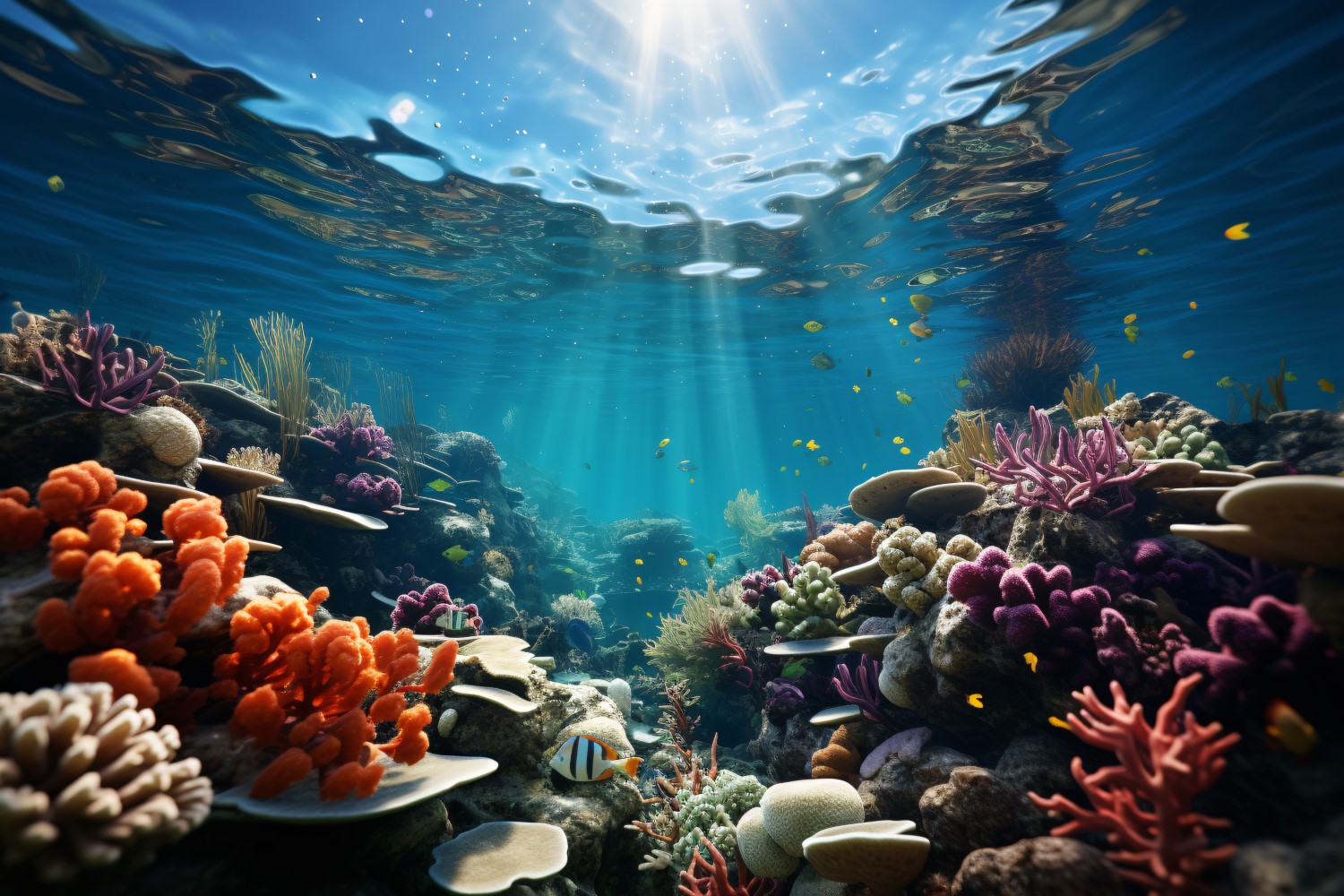 Underwater crystal flowers, Colourful underwater plant, Sea anemone glowing underwater scene Cinematic lighting