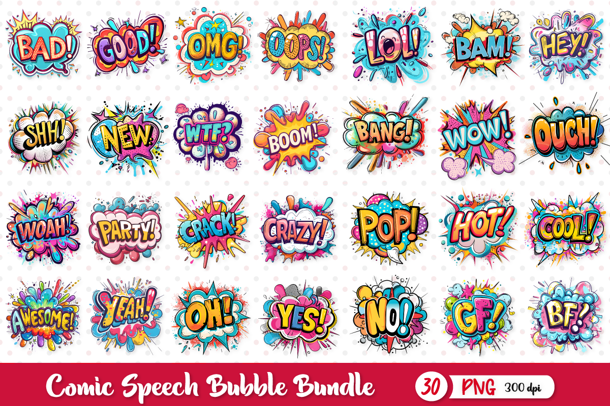 Colorful comic speech bubbles, Speech Bubble, Pop Art, Retro speech, Comic Balloon Bubble Art Bundle.