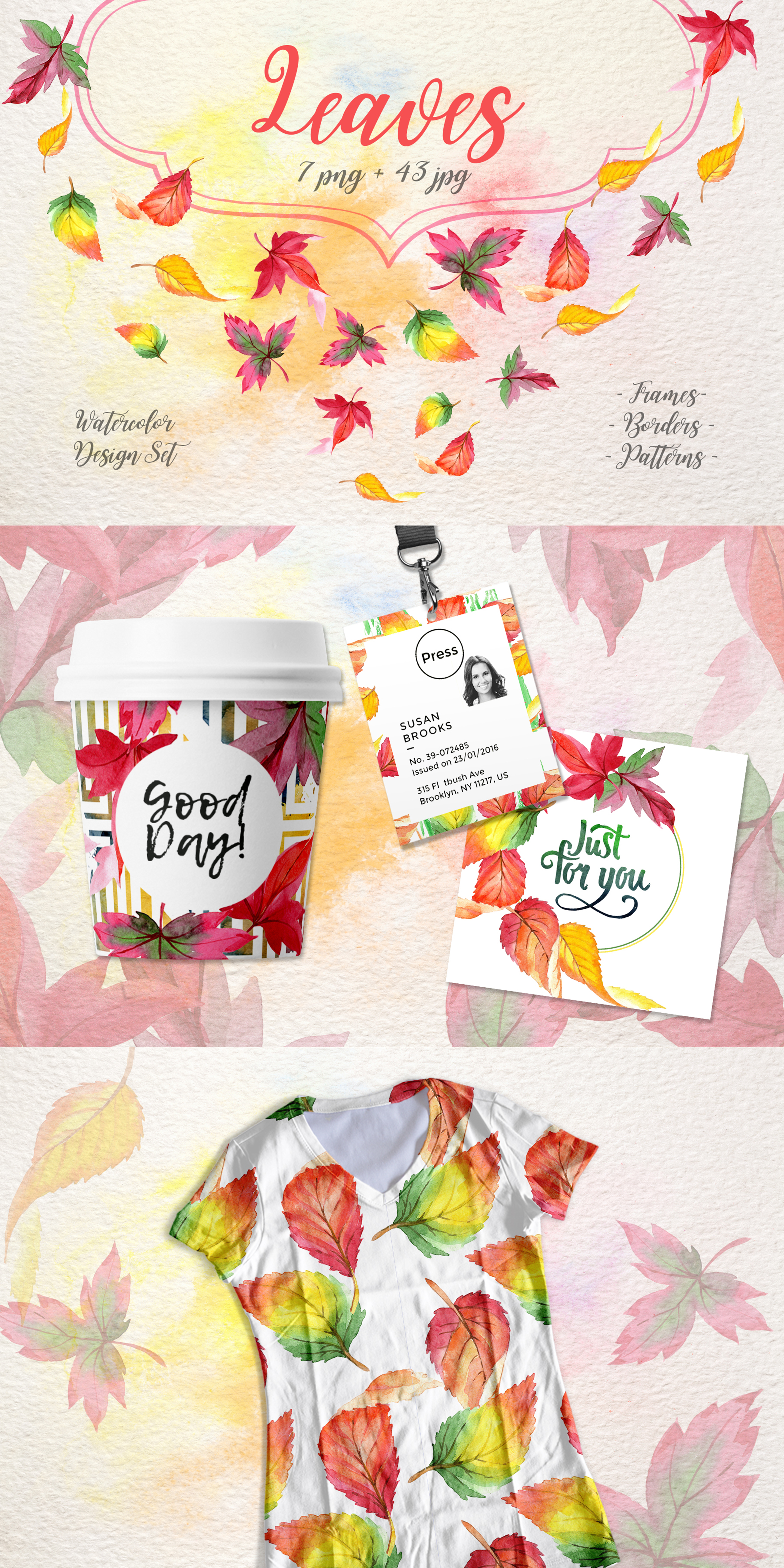 Autumn leaves a watercolor set of 50 files. Leaf plant botanical garden floral foliage. Ideal material for DIY, wedding invitations, greeting cards, quotes, blogs, posters and more.