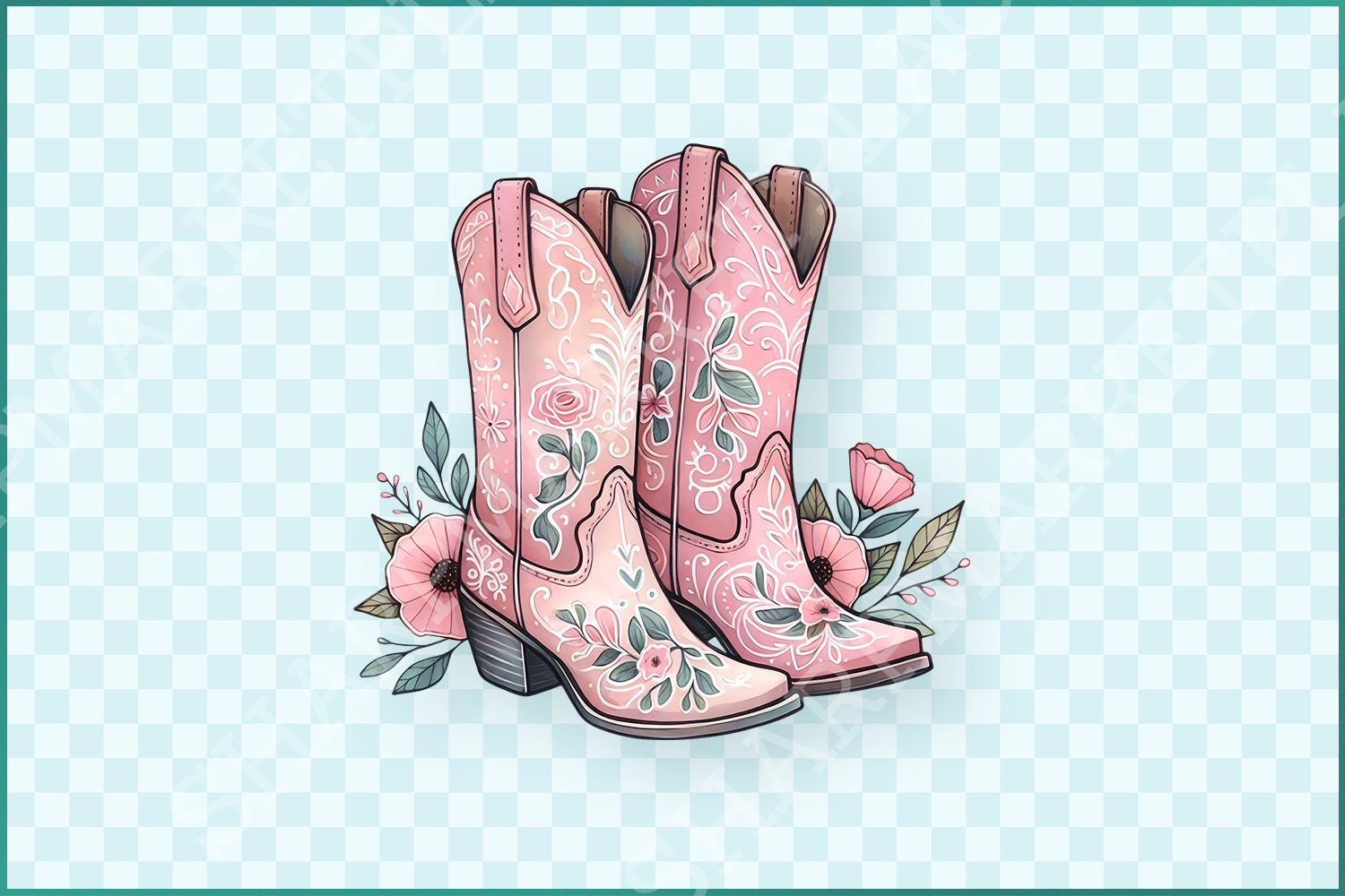 Coquette Cowgirl Boots PNG, Pink Floral Tee Clipart, Trendy Western Sublimation Design, Aesthetic Illustration