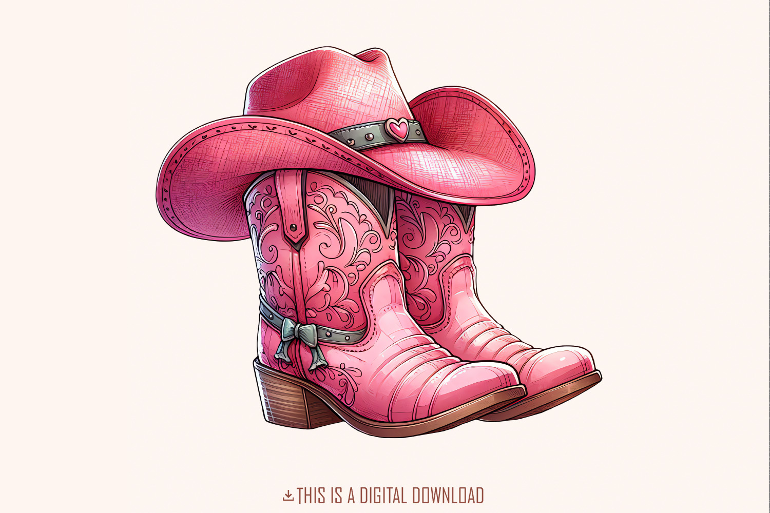 Coquette Cowgirl PNG, Western Valentine Sublimation, Valentines Day png, Cowboy Hat PNG, Vintage Illustration
