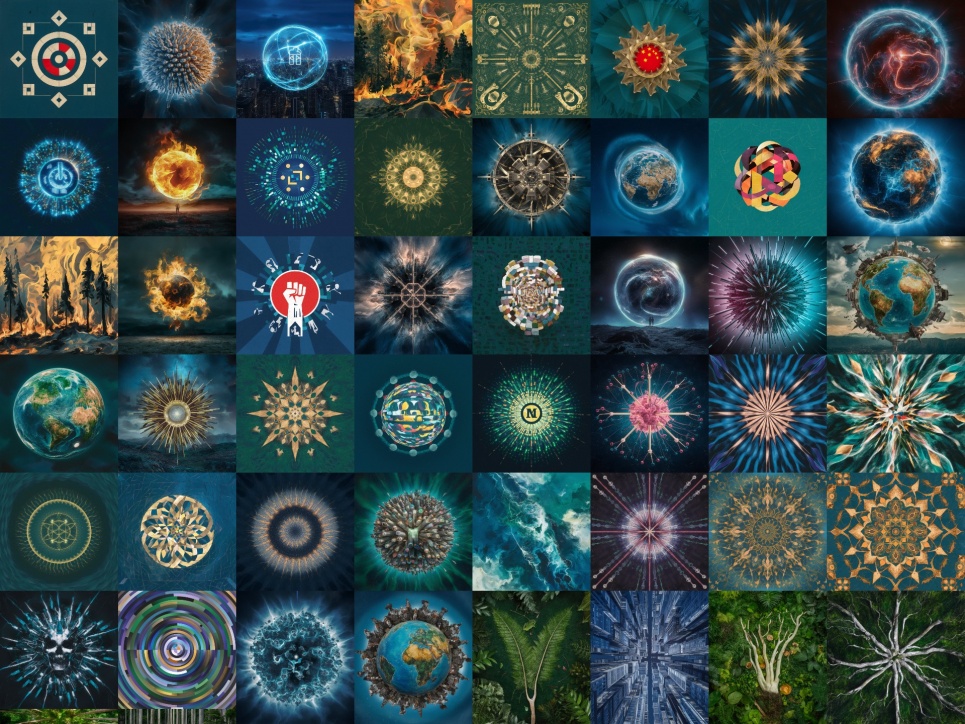Created through advanced AI algorithms, these artworks explore themes of unity, infinity, and the interconnectedness of all things. From fiery solar bursts to serene aquatic spheres, each design captures a different aspect of our universe's beauty. The collection seamlessly blends organic forms with geometric precision, creating visual symphonies that speak to both the analytical and intuitive sides of human nature.