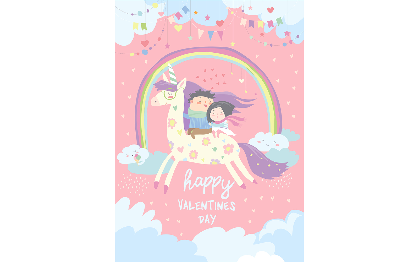 Couple In Love Riding On Unicorn Vector Romantic Illustration
