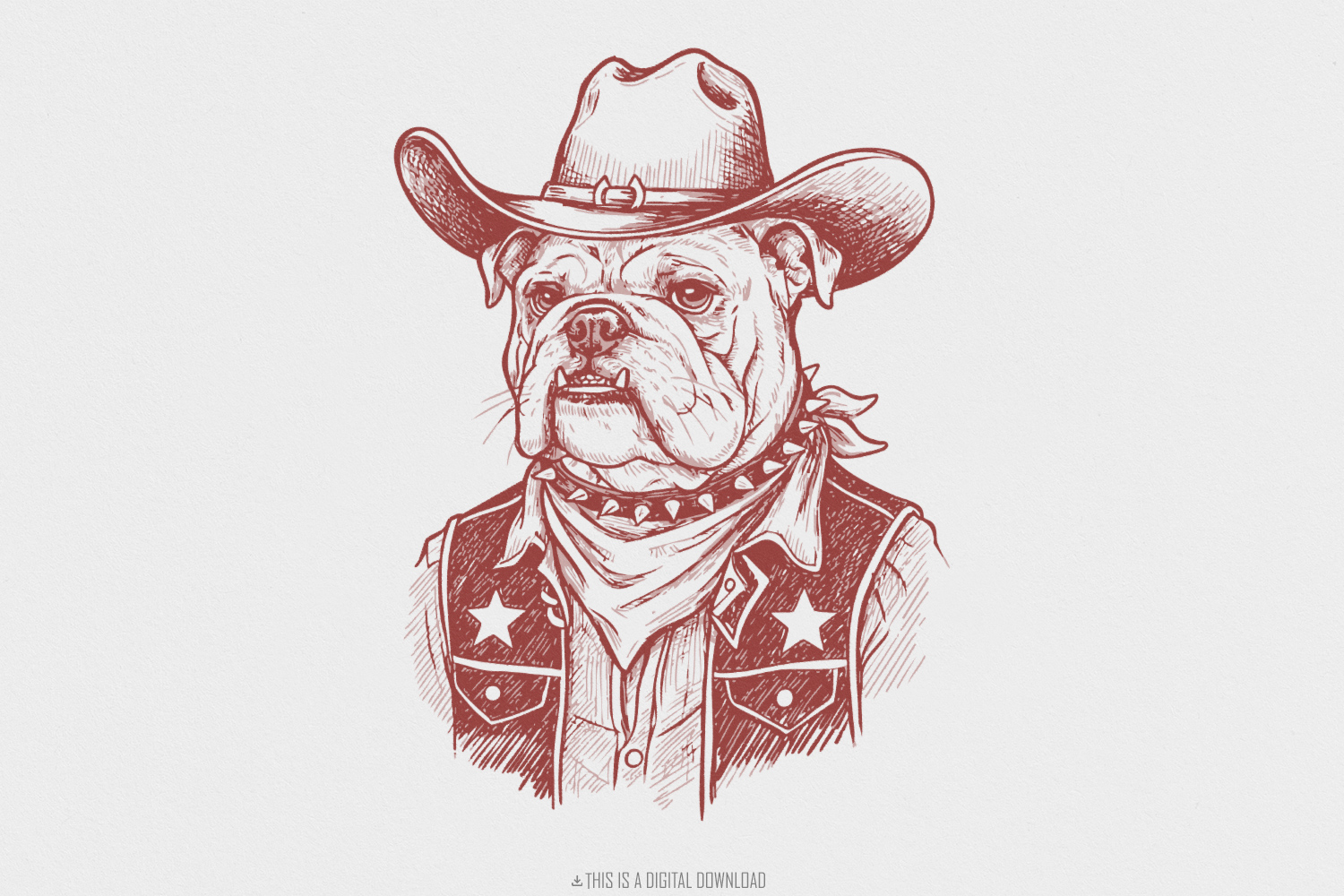 Cowboy Bulldog PNG, Western Dog Illustration, Bulldog Clipart, Digital Download, Rodeo Art, Cute