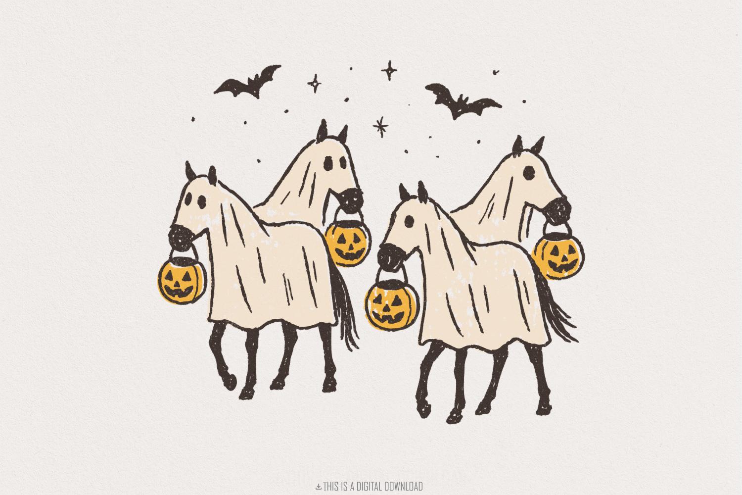 Cowboy Ghost Horse PNG, Halloween Shirt Digital Download, Spooky Season PNG, Cute Ghost PNG, Retro Illustration