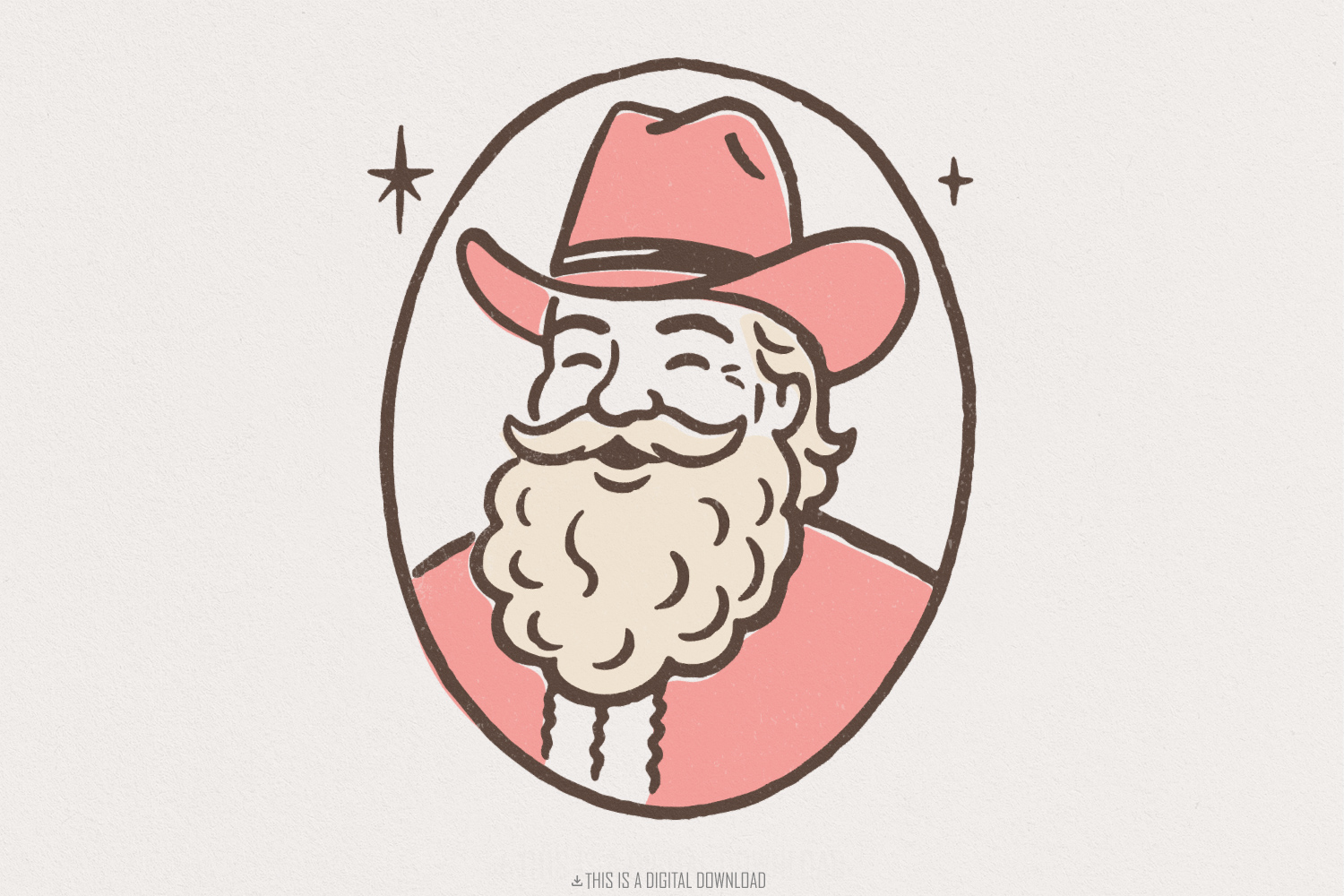 Cowboy PNG, Western PNG, Christmas PNG, Vintage Santa, Retro Holiday Art, Santa Cowboy Clipart, Digital Bearded Man, Rustic Christmas PNG