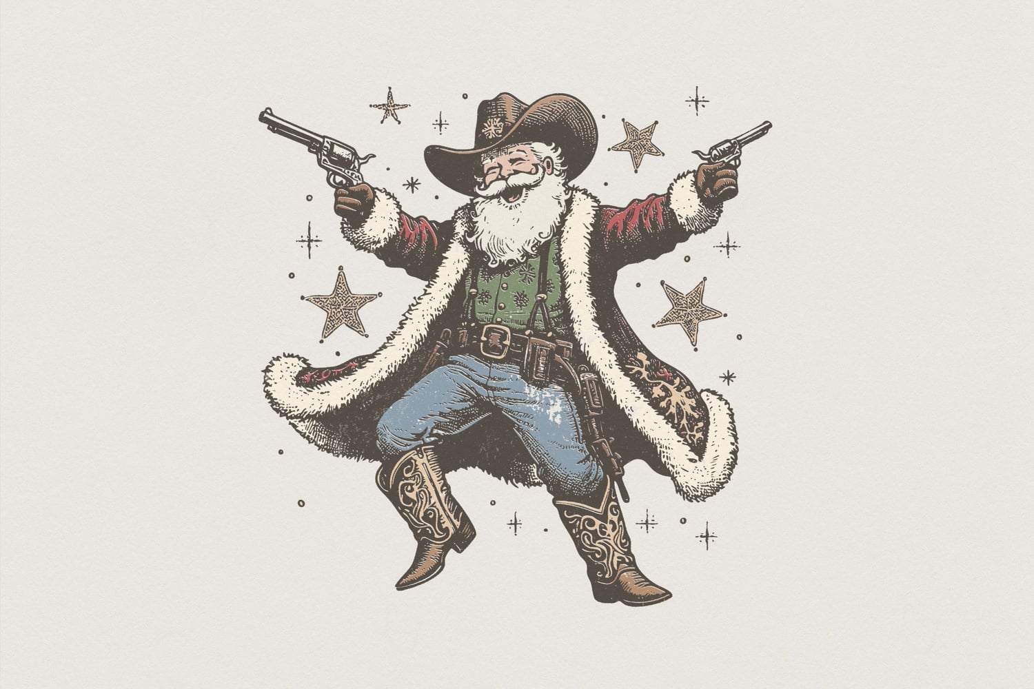 Cowboy Santa PNG, Western Christmas T-Shirt, Vintage Holiday Art, Cowboy Santa Claus PNG, Country Illustration