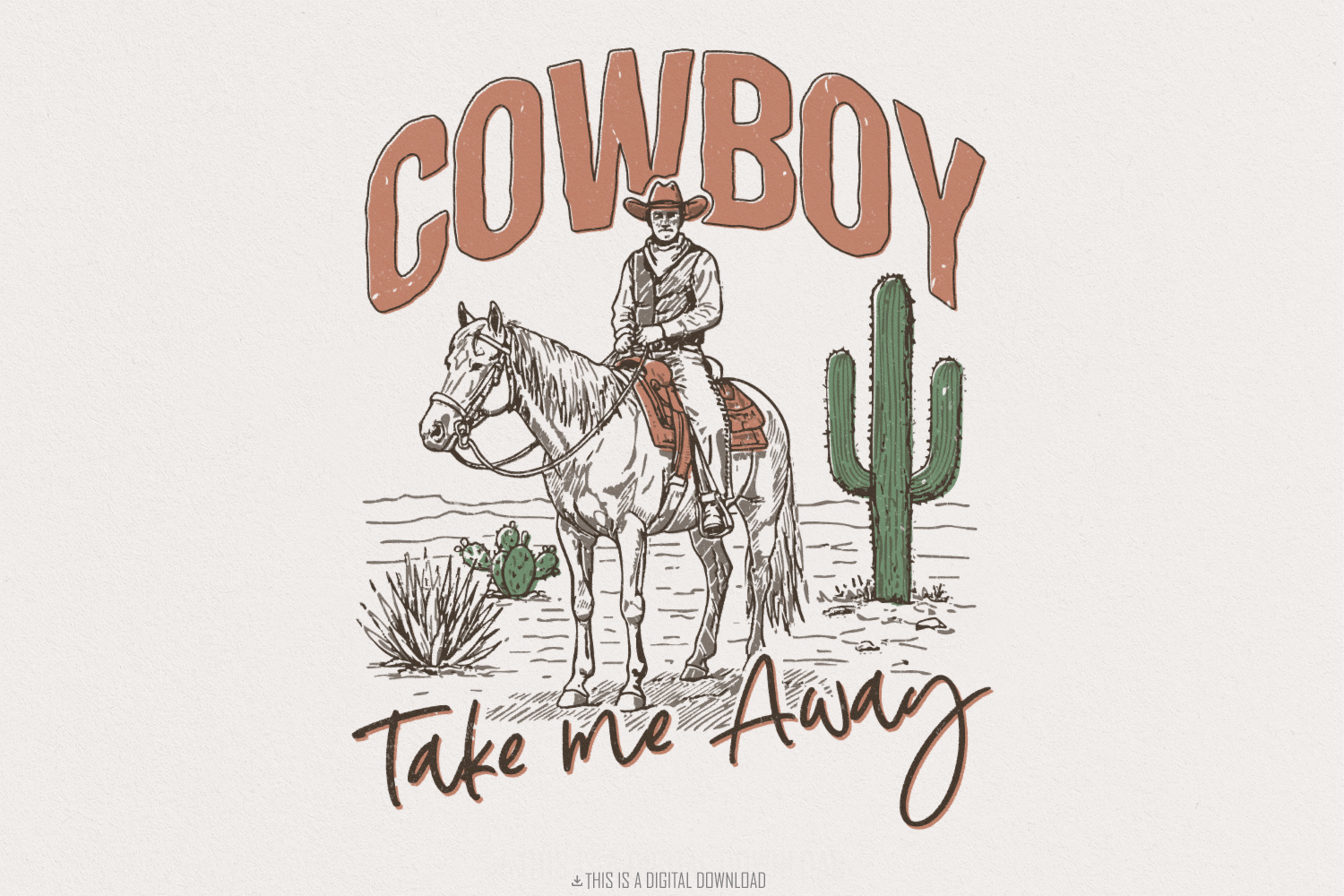 Cowboy Take Me Away Western Instant Digital Download, Western PNG Designs, Sublimation DTF PNG, Illustration