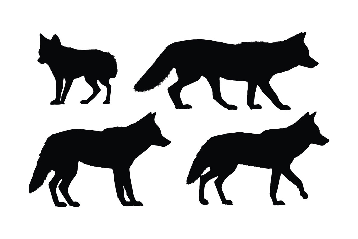 Coyote standing silhouette set vector. Coyote walking silhouette bundle design. Wild coyotes vector design on a white background. Coyote standing in different positions silhouette collection. Coyote wolf walking silhouette set vector.