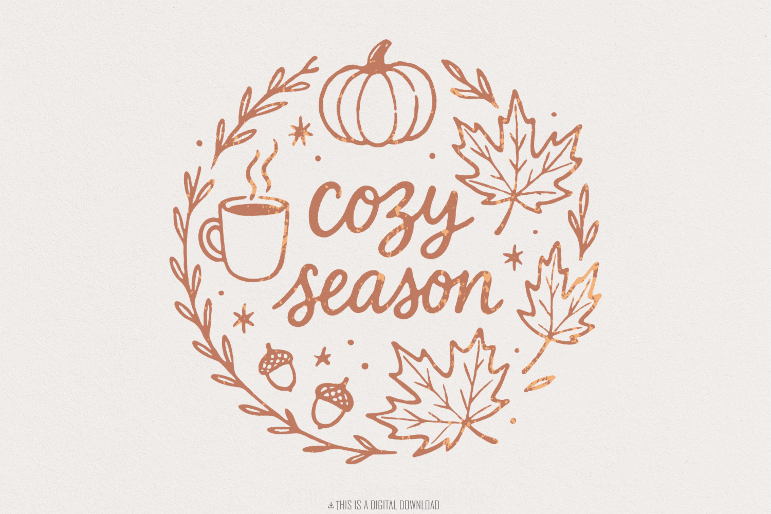 Cozy Season PNG, Autumn Leaves, Pumpkin, Hot Drink Fall Clipart, Cozy Home Wall Art, Digital Download for Shirt, Printable PNG Art
