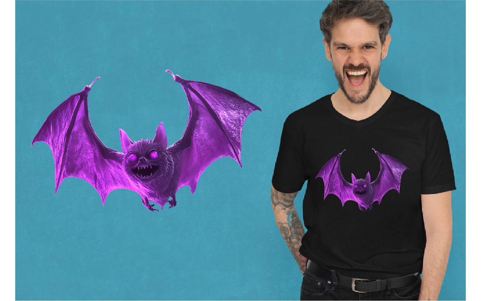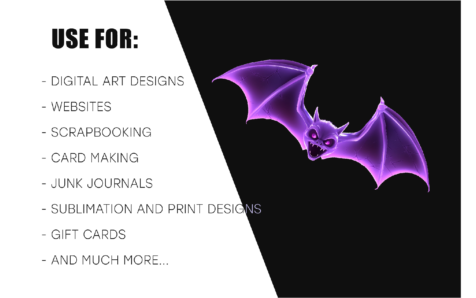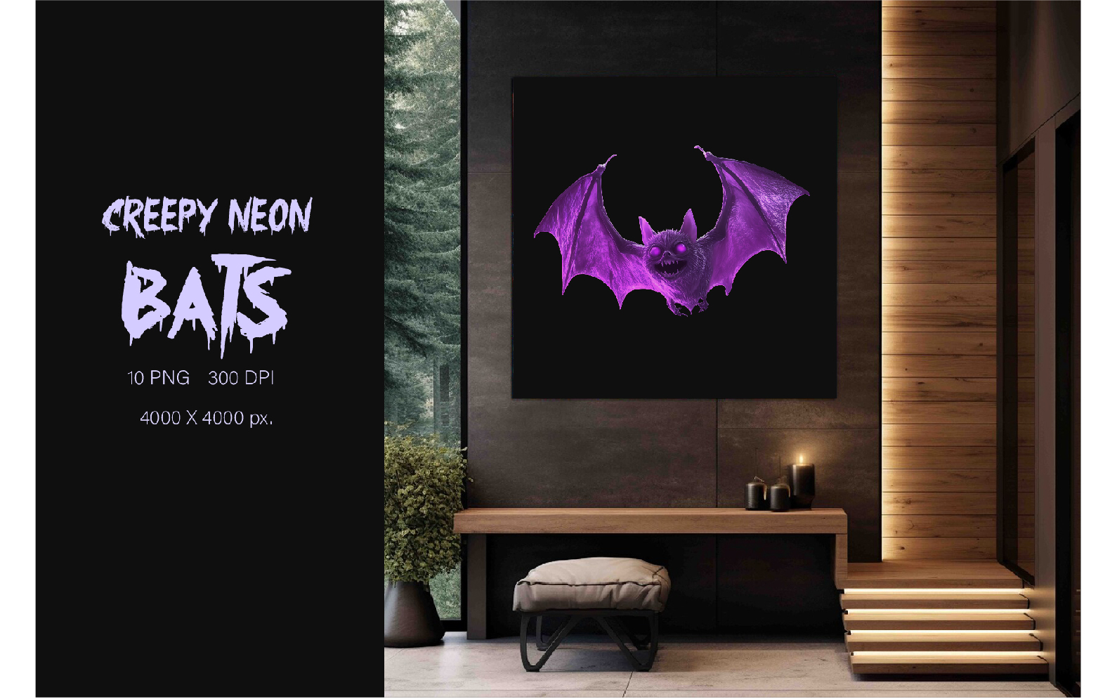 Bundle of Creepy Neon Bats, PNG format for sublimation on dark backgrounds.