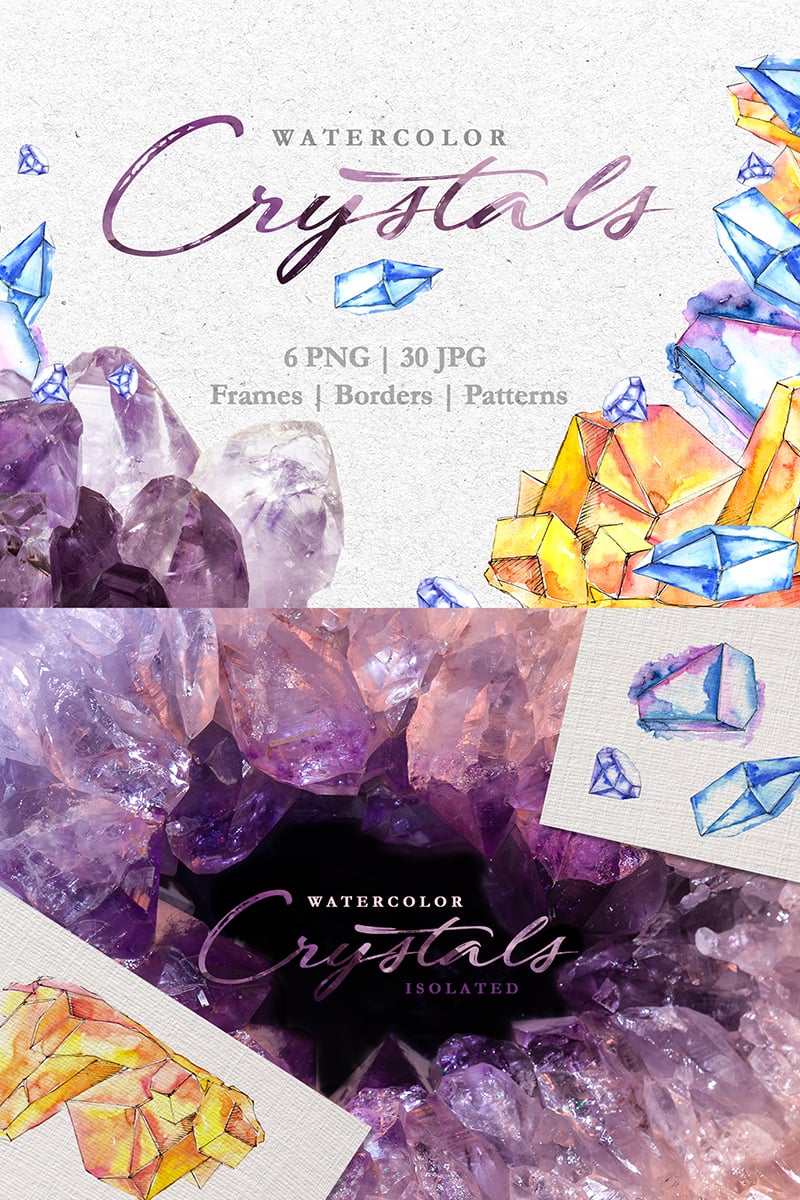 Crystals Blue-yellow Watercolor png clipart of 36 files. Ideal material for DIY, wedding invitations, greeting cards, quotes, blogs, posters and more.