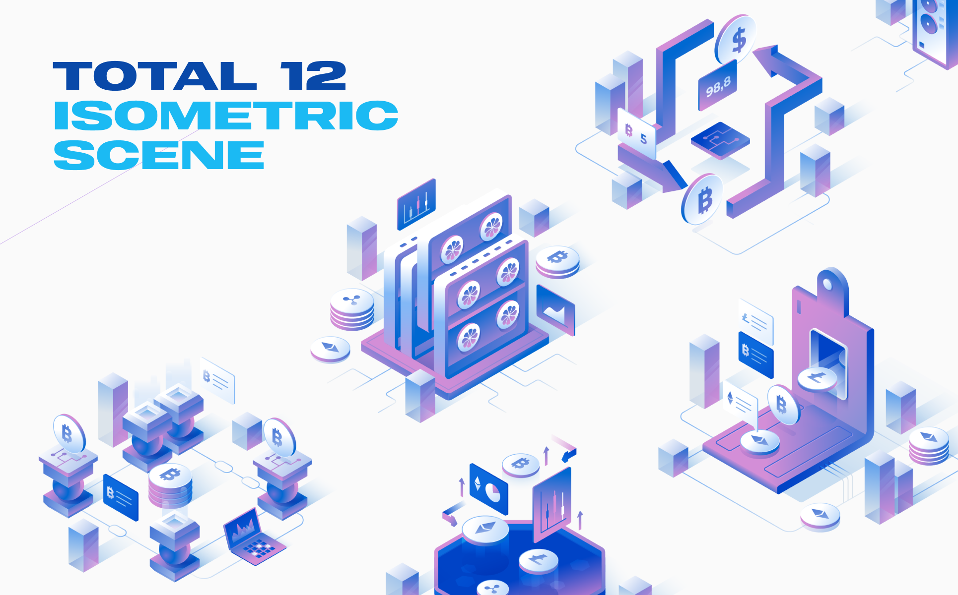 Currency pack of custom Isometric Illustrations suitable for any Cryptocurrency niche. Perfect for UI/UX design, presentation, advertising, and many more.