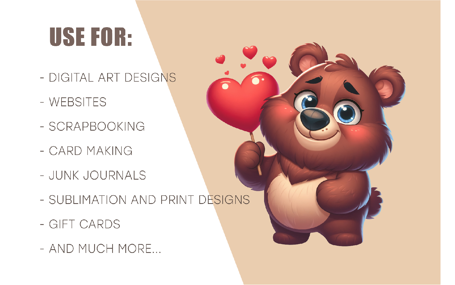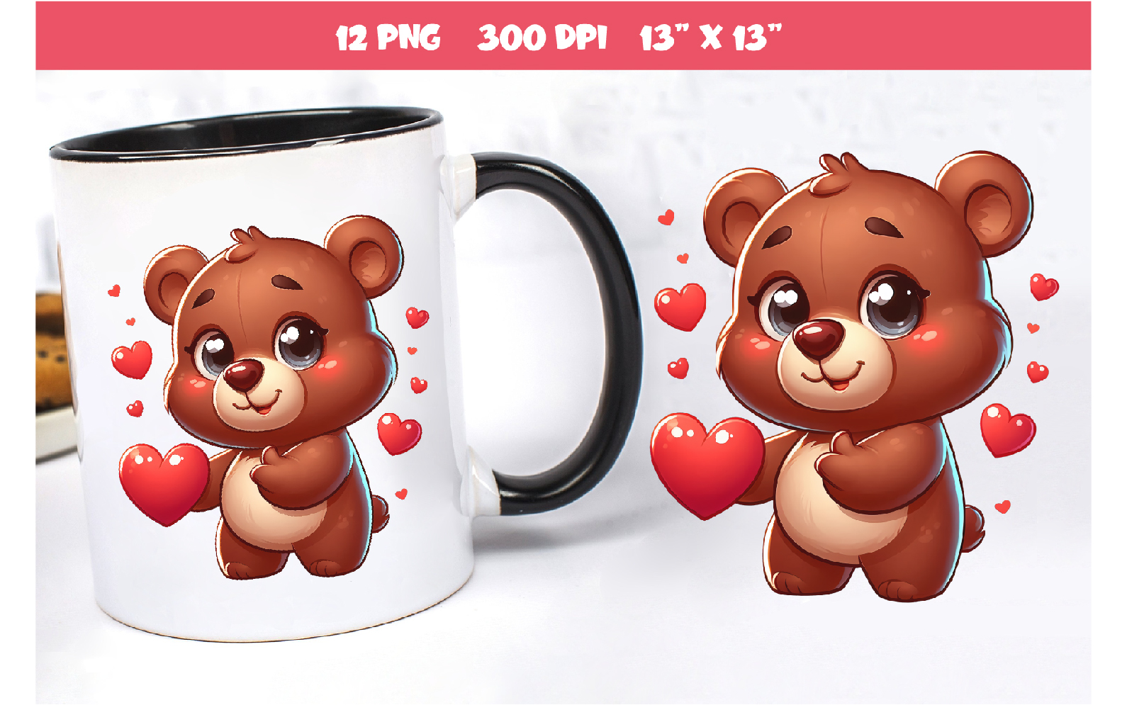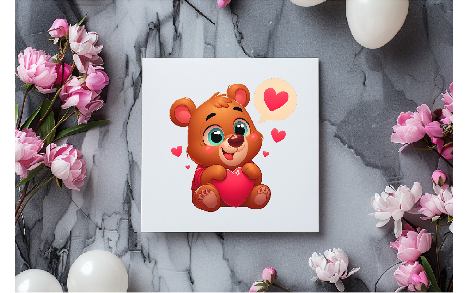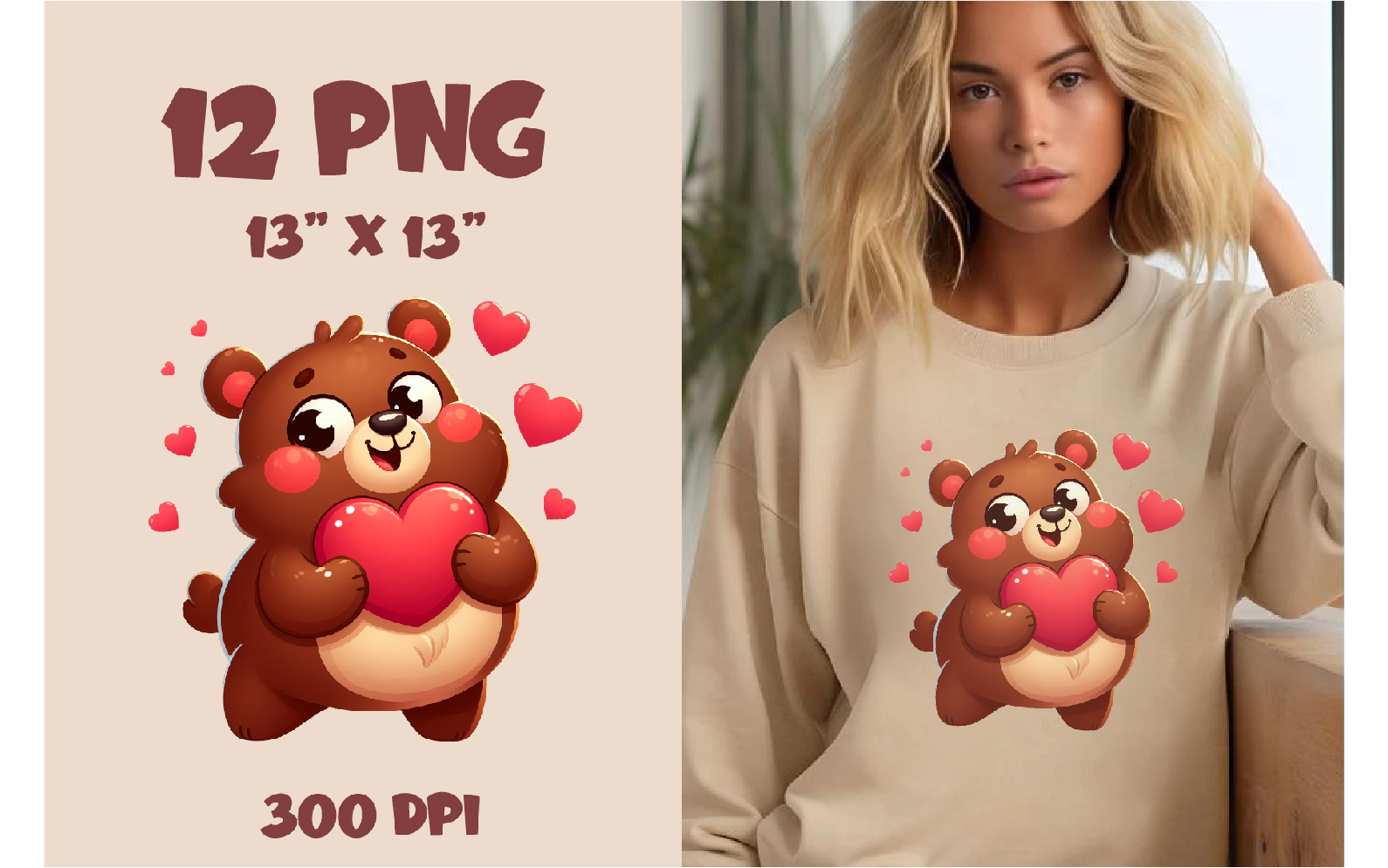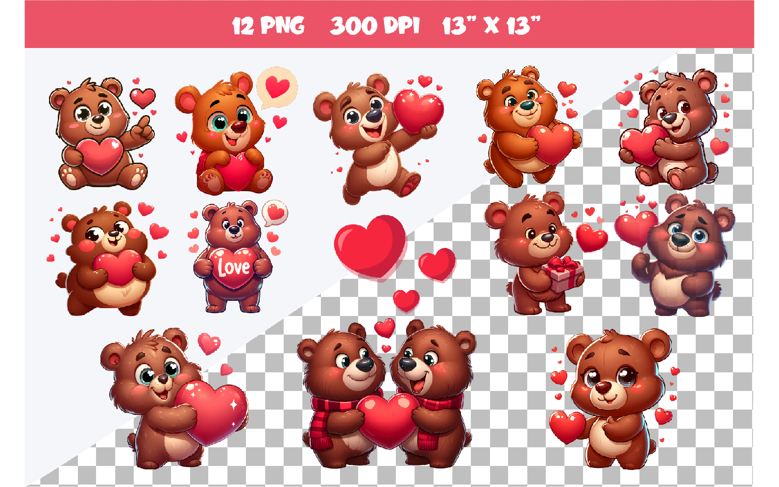 Cute Bear in Love. Valentine's Day, PNG. Illustration