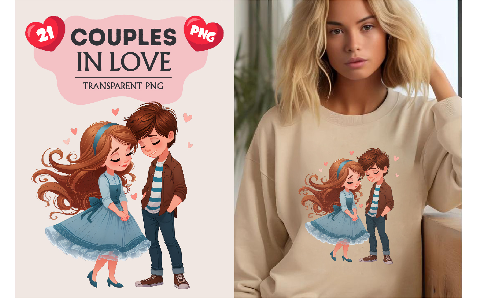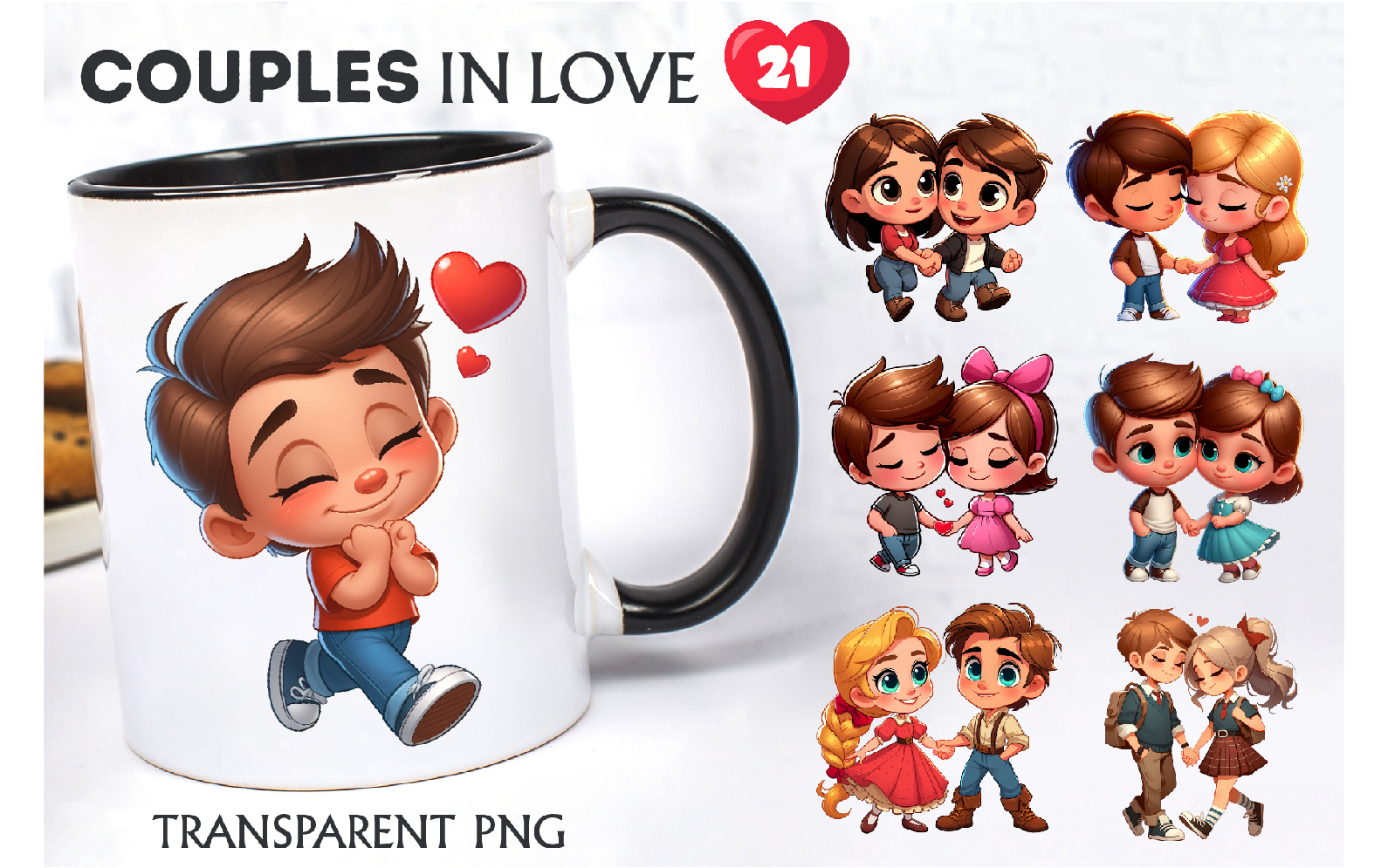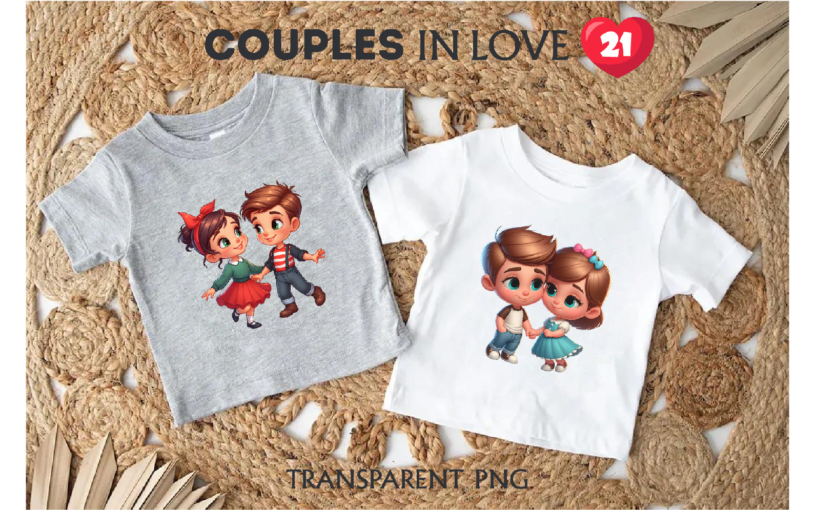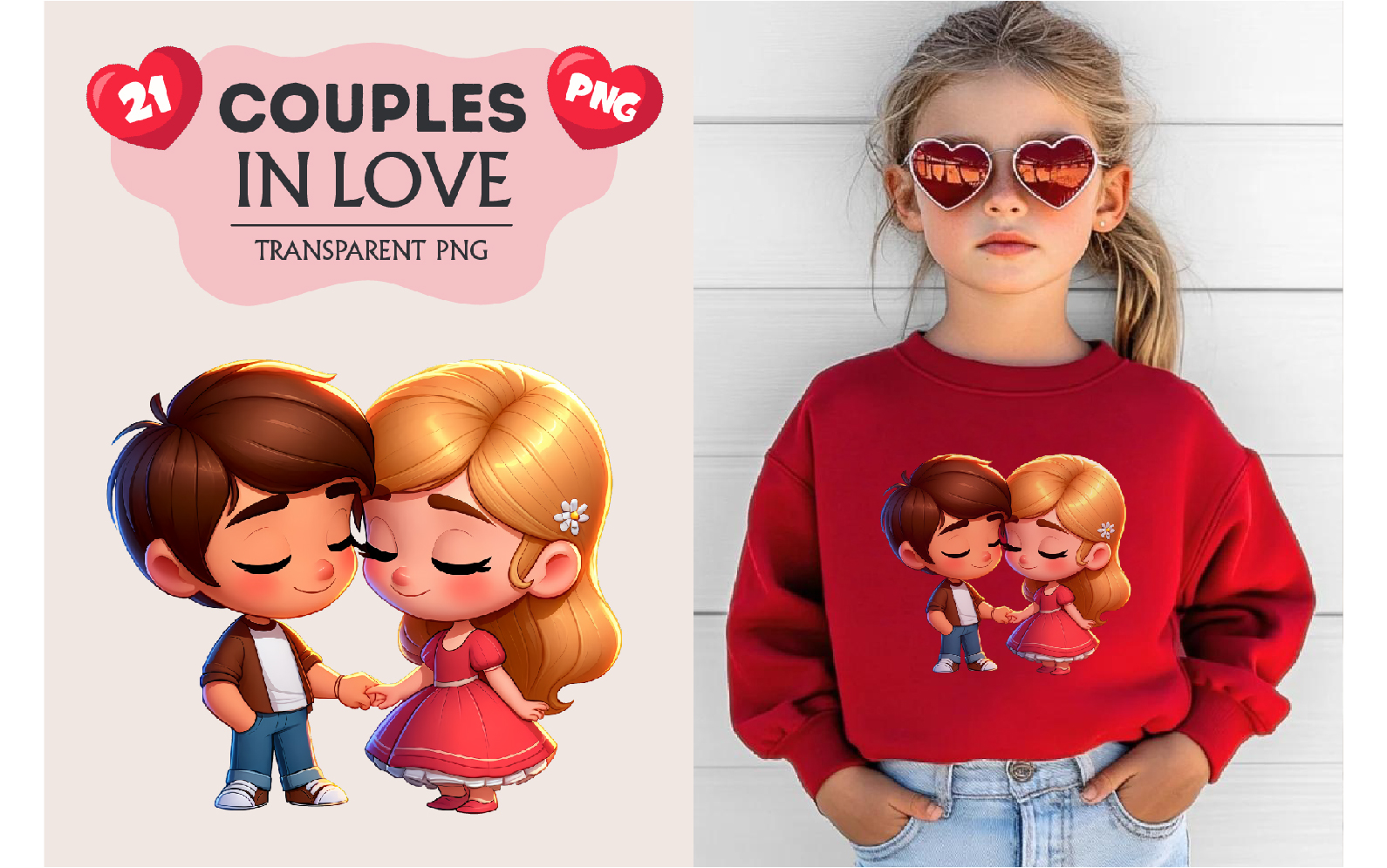 Cute cartoon couples in love. Valentine's Day, PNG.