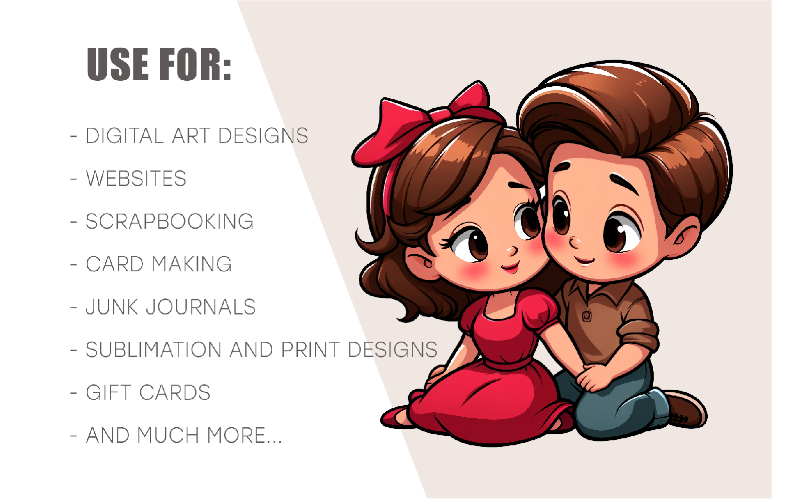 Cute cartoon couples in love. Valentine's Day, PNG. Illustration
