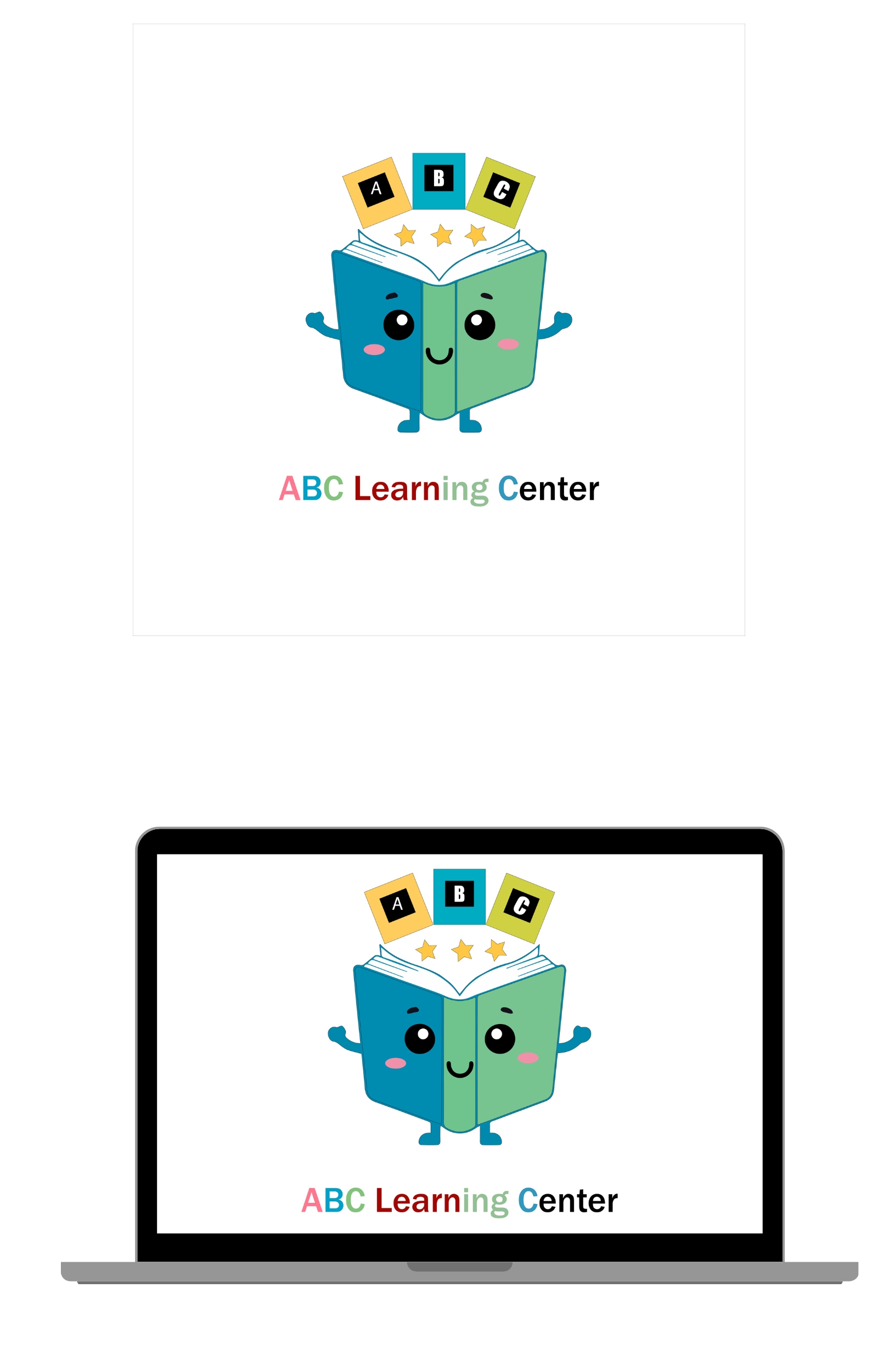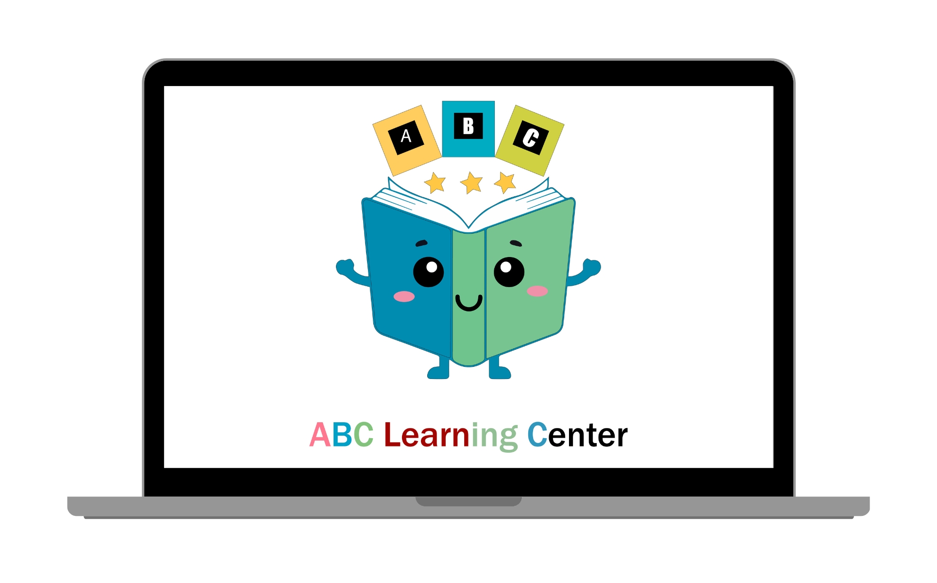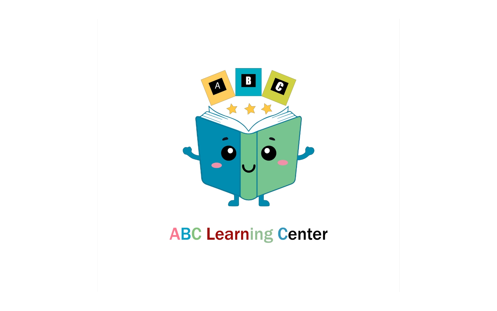 Cute cartoon open book with abc blocks and stars, isolated on white background Illustration