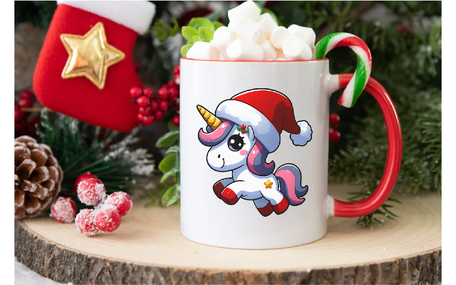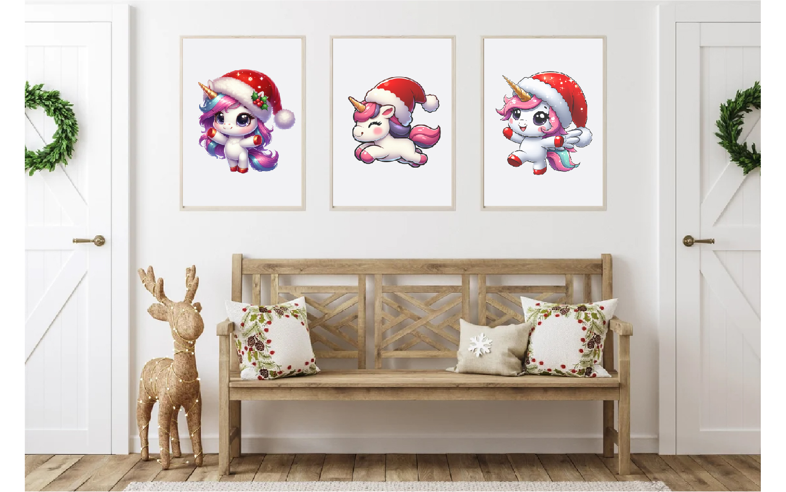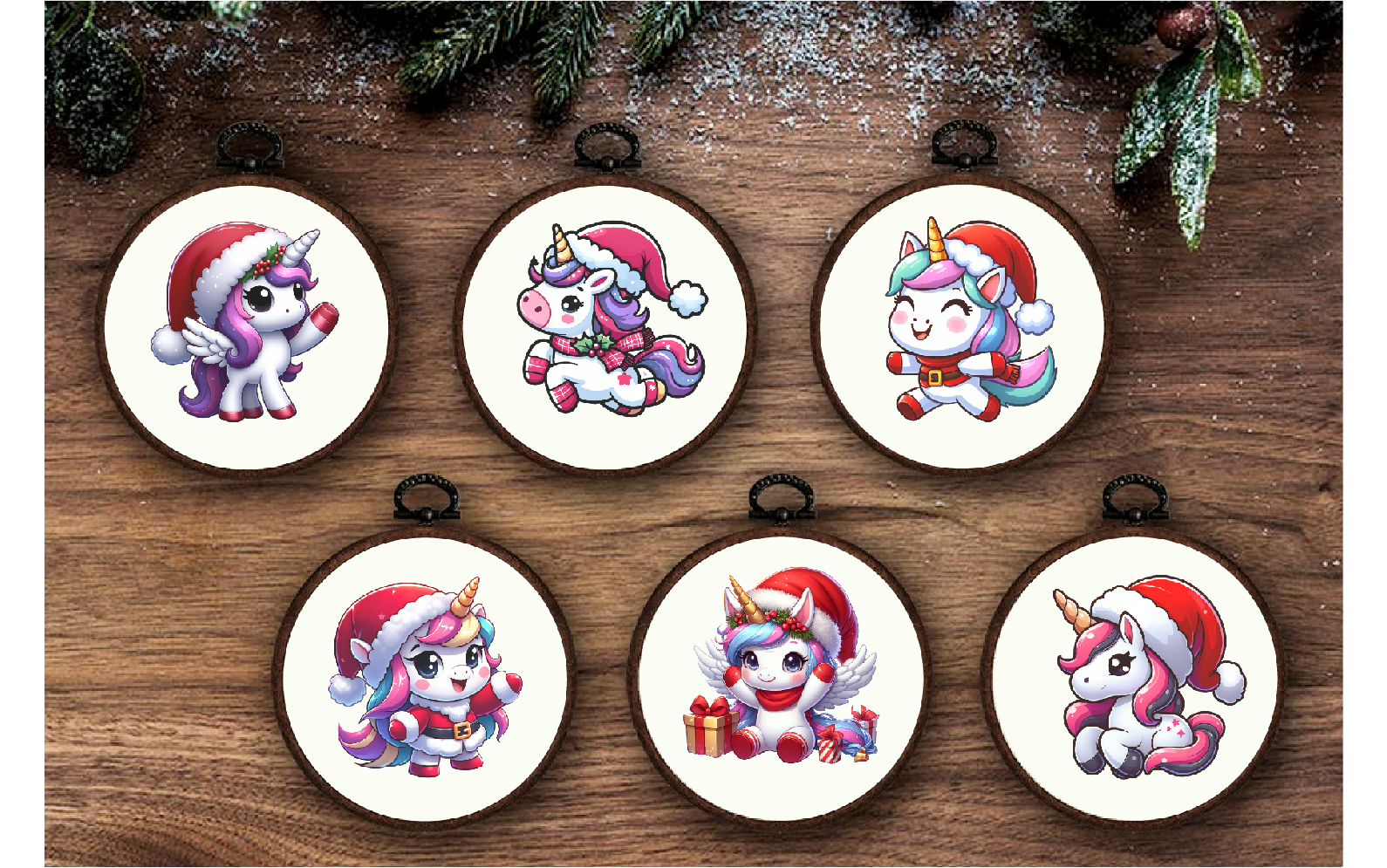 Cute Christmas Unicorns. Clipart, PNG.