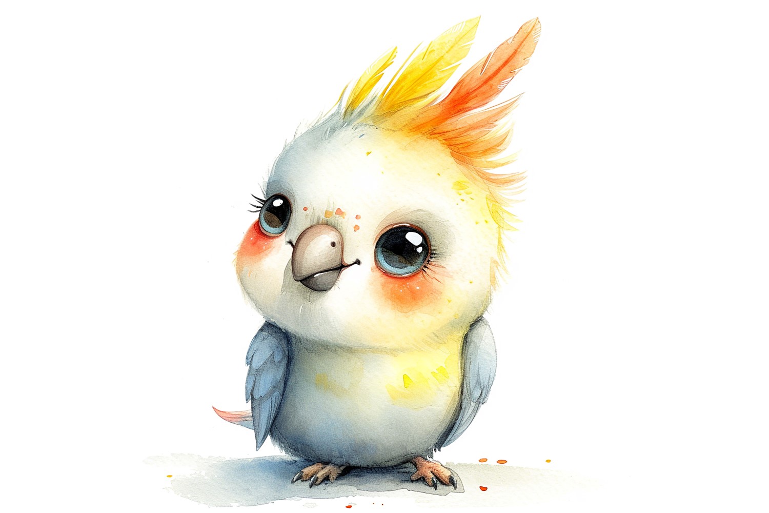 Cute Cockatiel Bird Baby Watercolor Handmade illustration 4 Illustration