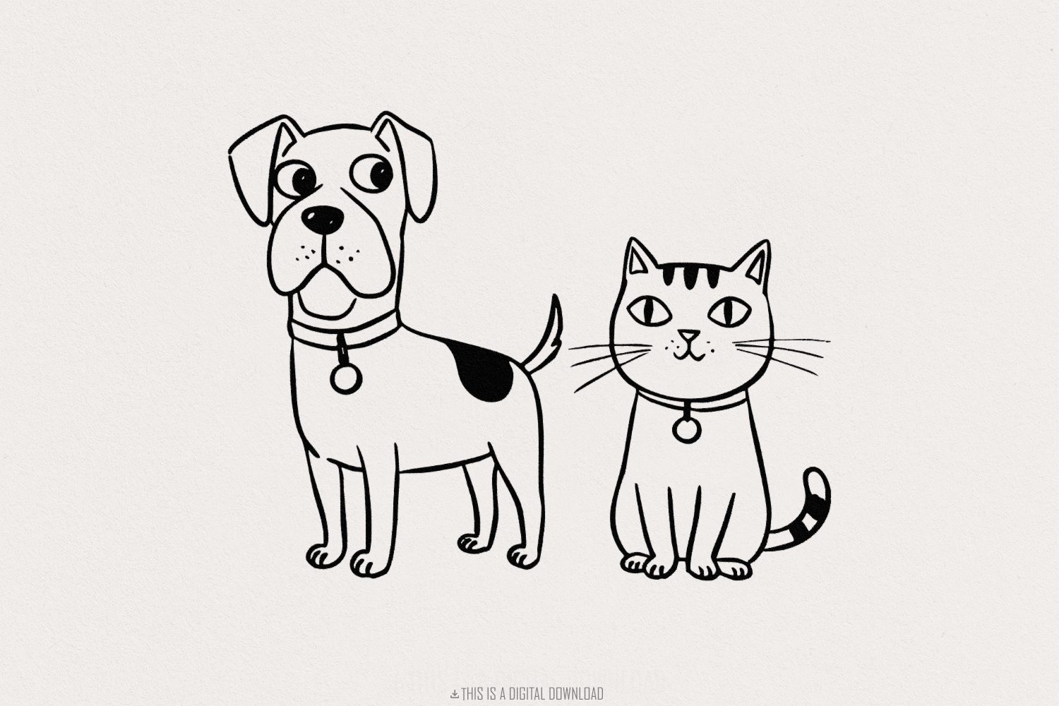 Cute Dog and Cat PNG, Cartoon Pet Friends Digital Download, Funny Animal Lover Shirt, Sublimation Illustration