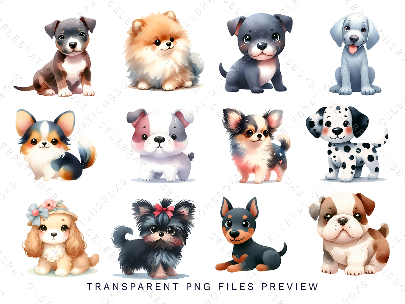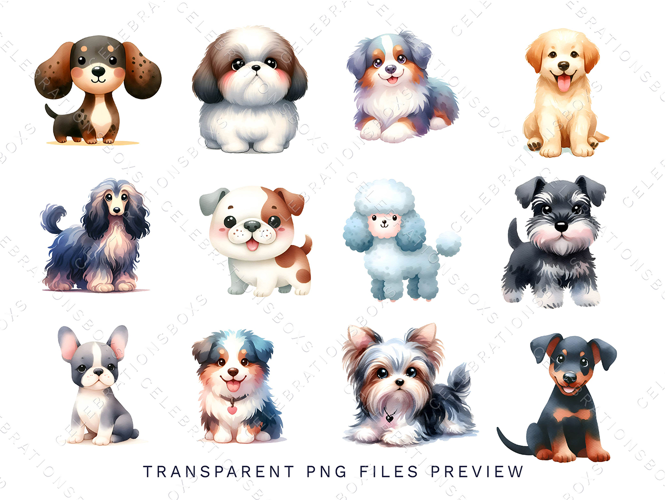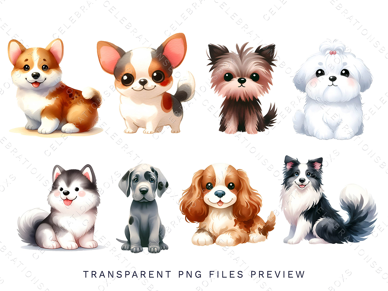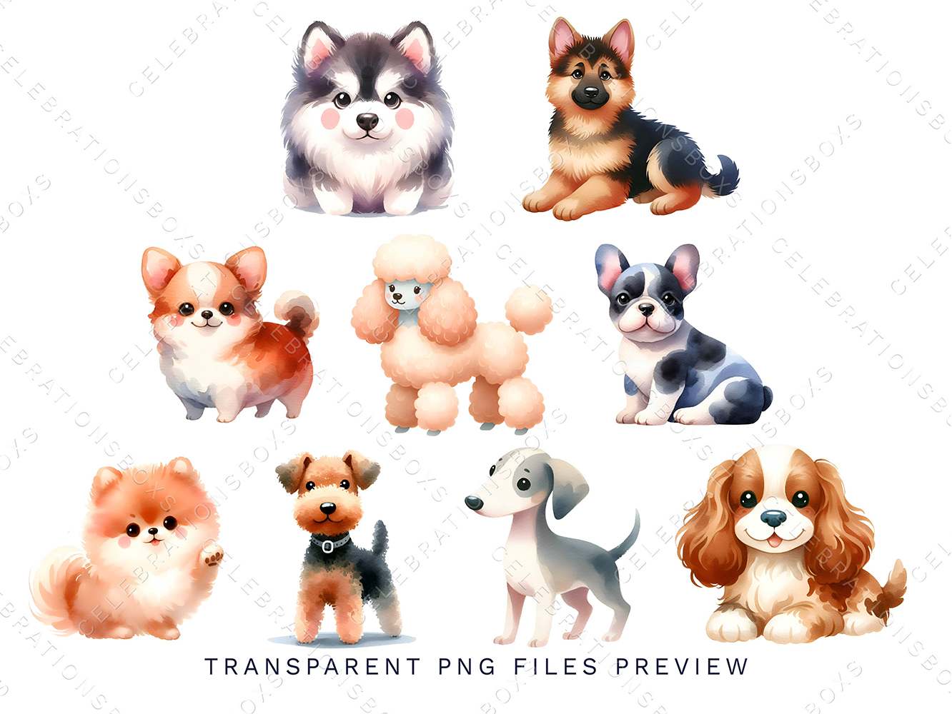 Cute Dogs Clipart, Dog Breeds PNG, Puppy Clipart, Pet Clipart, Watercolor Clipart Illustration