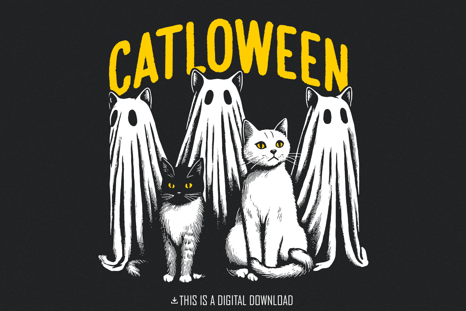 Cute Halloween Cat PNG, Ghost Cat png, Halloween png, Black Cat PNG, Spooky Season, Retro Halloween Illustration