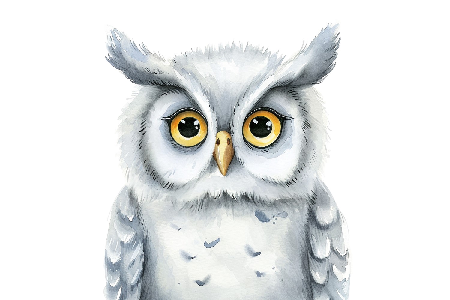 Cute horned owl Bird Baby Watercolor Handmade illustration 4 Illustration
