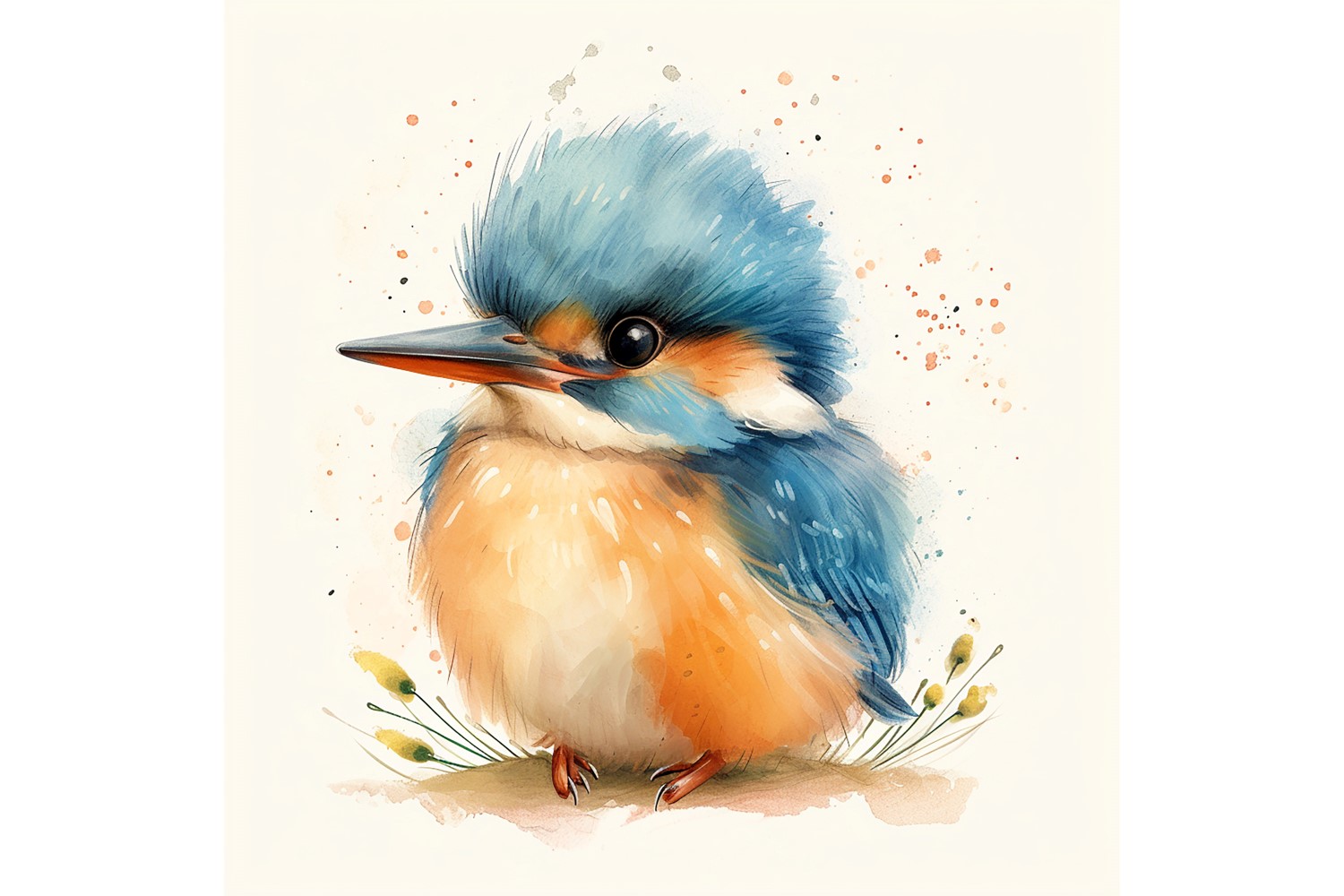 Cute Kingfisher Bird Baby Watercolor Handmade illustration 2 Illustration
